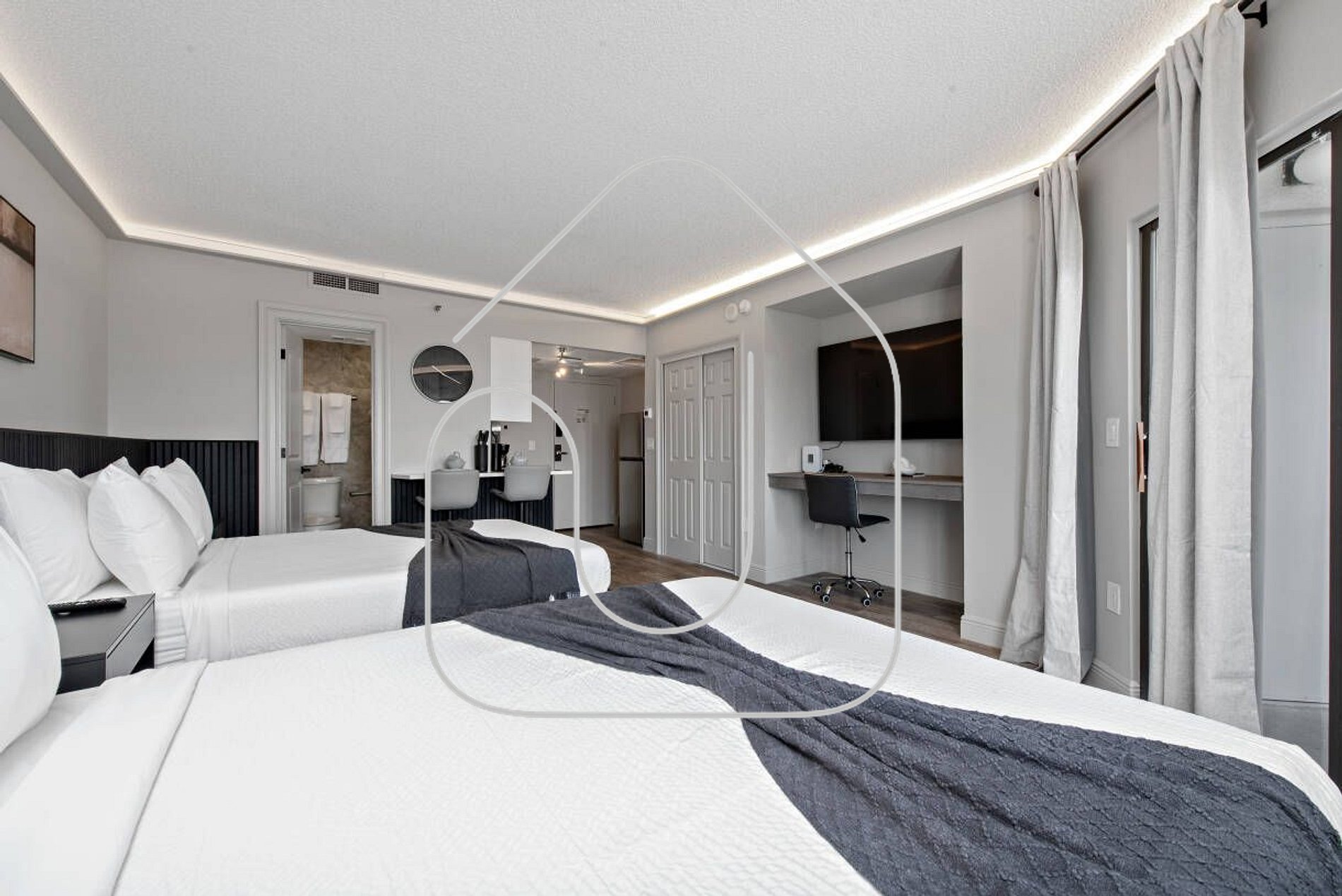 Studio/Bedroom 2 queen-size beds Smart TVs in both bedroom and living area Accommodates up to 4 guests