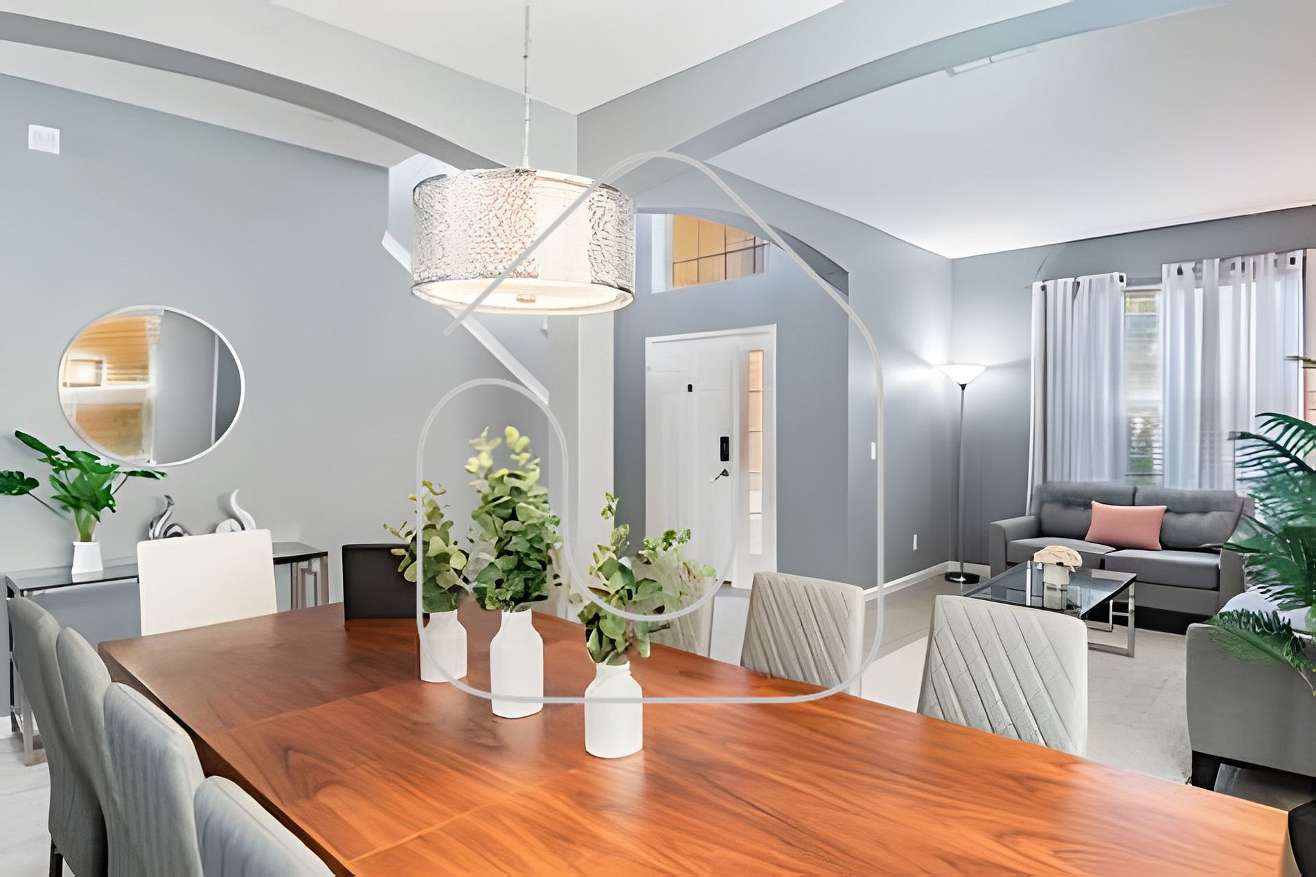 La ubicación está en Davenport está a 40 minutos de todo , no hay mucho en esa área, pero es nueva y en crecimiento La casa muy espaciosa con 6 habitaciones y muchas camas y baños, área de juegos para los adolescentes, el área de comedor, sala, cocina es mediana para la cantidad de personas. El comedor no me gustó ya que todas las sillas están flojas, tuvimos inconvenientes con la calefacción de piscina nunca funcionó, a pesar de que nos habían dicho que iban a reparar y hasta este momento no nos han hecho el reembolso que quedaron de hacerlo , tuve que recurrir a Airbnb para que interviniera. El wifi, es intermitente, considero que es por ser área de Davenport así que tómenlo en cuenta porque ya van varias veces que hemos tenido problemas y por lo mismo no se pueden usar TV y teníamos que estar conectando nuestro propio internet.