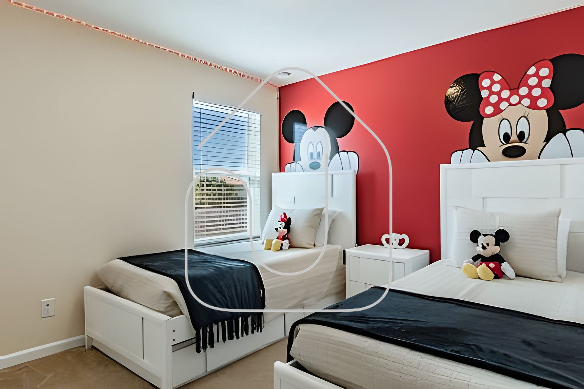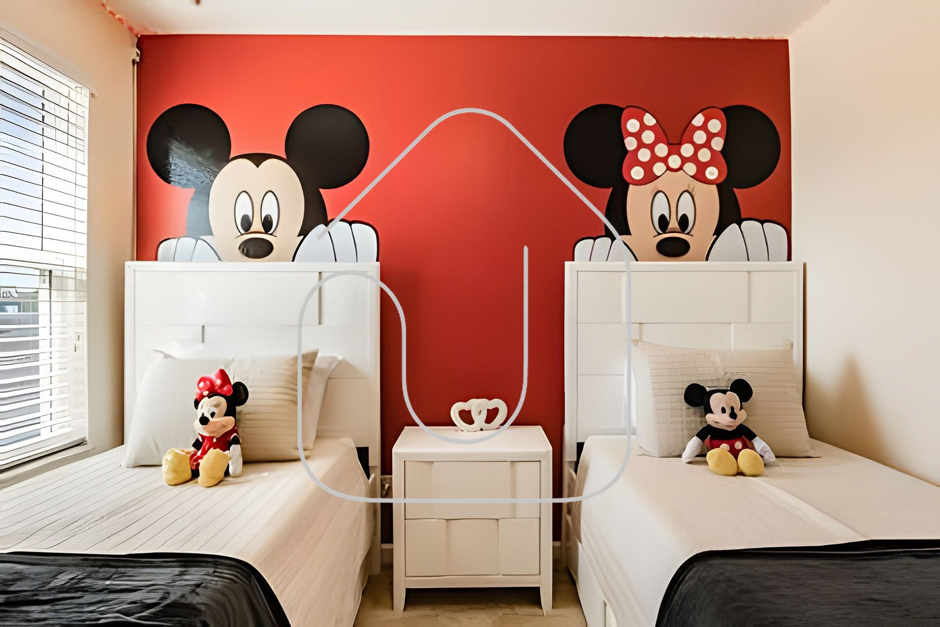 - Mickey&Minnie twin bedroom - 2 Twin size bed, sharing full bathroom.