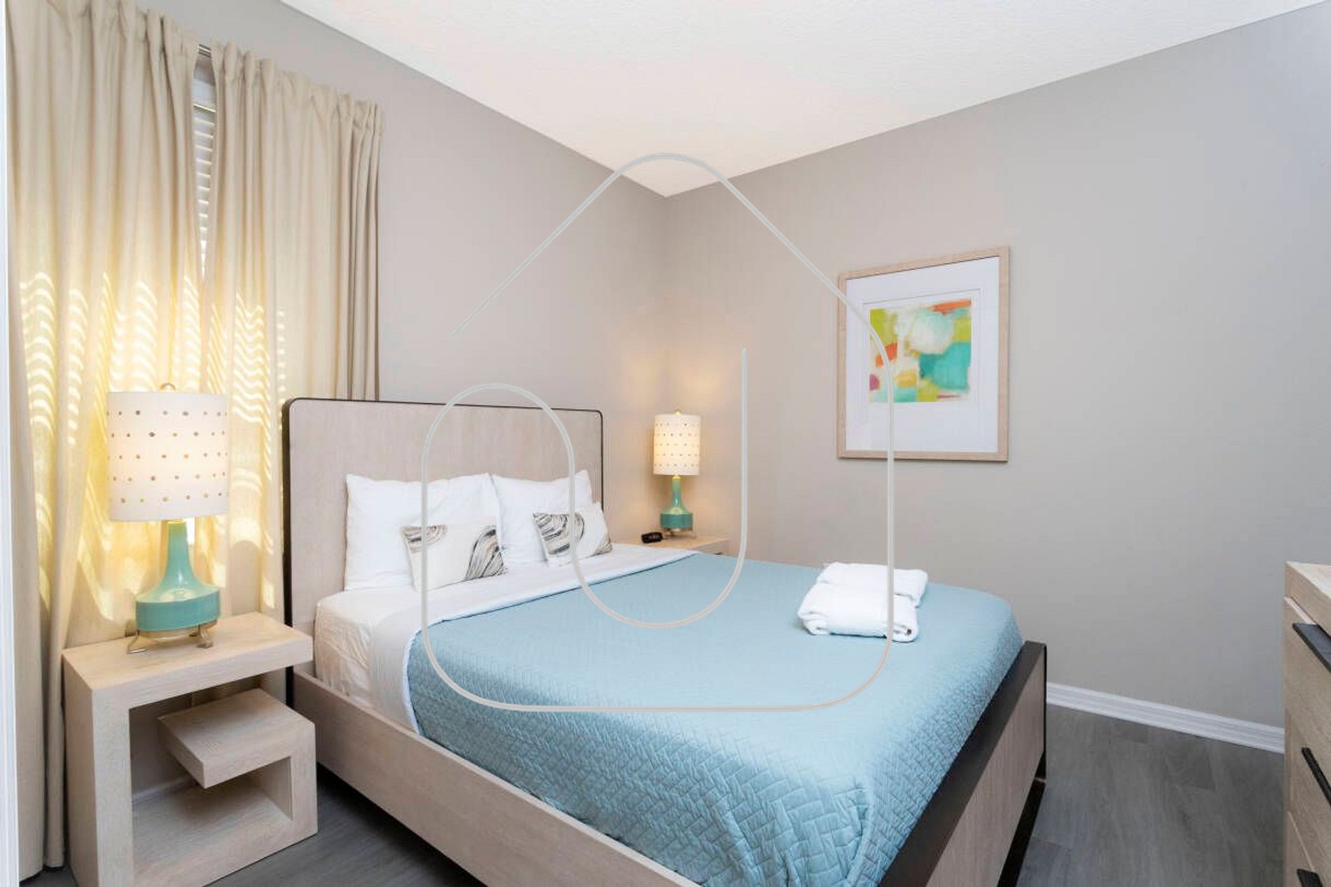 The Veranda Palms community is gated with 24/7 security, providing a safe and peaceful environment. Guests also have full access to the resort amenities, including pools, waterslides, fitness center, lounge areas, and more.