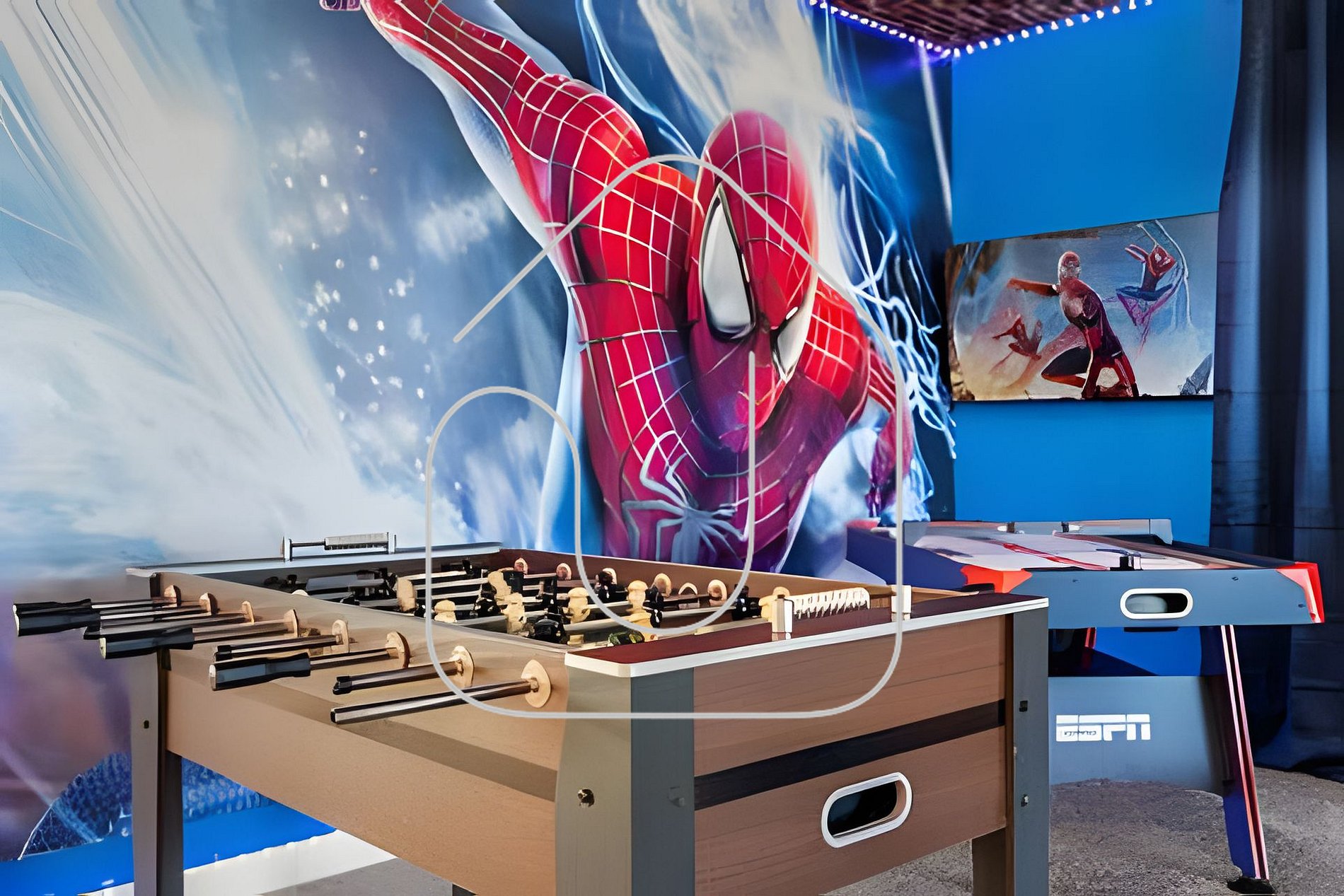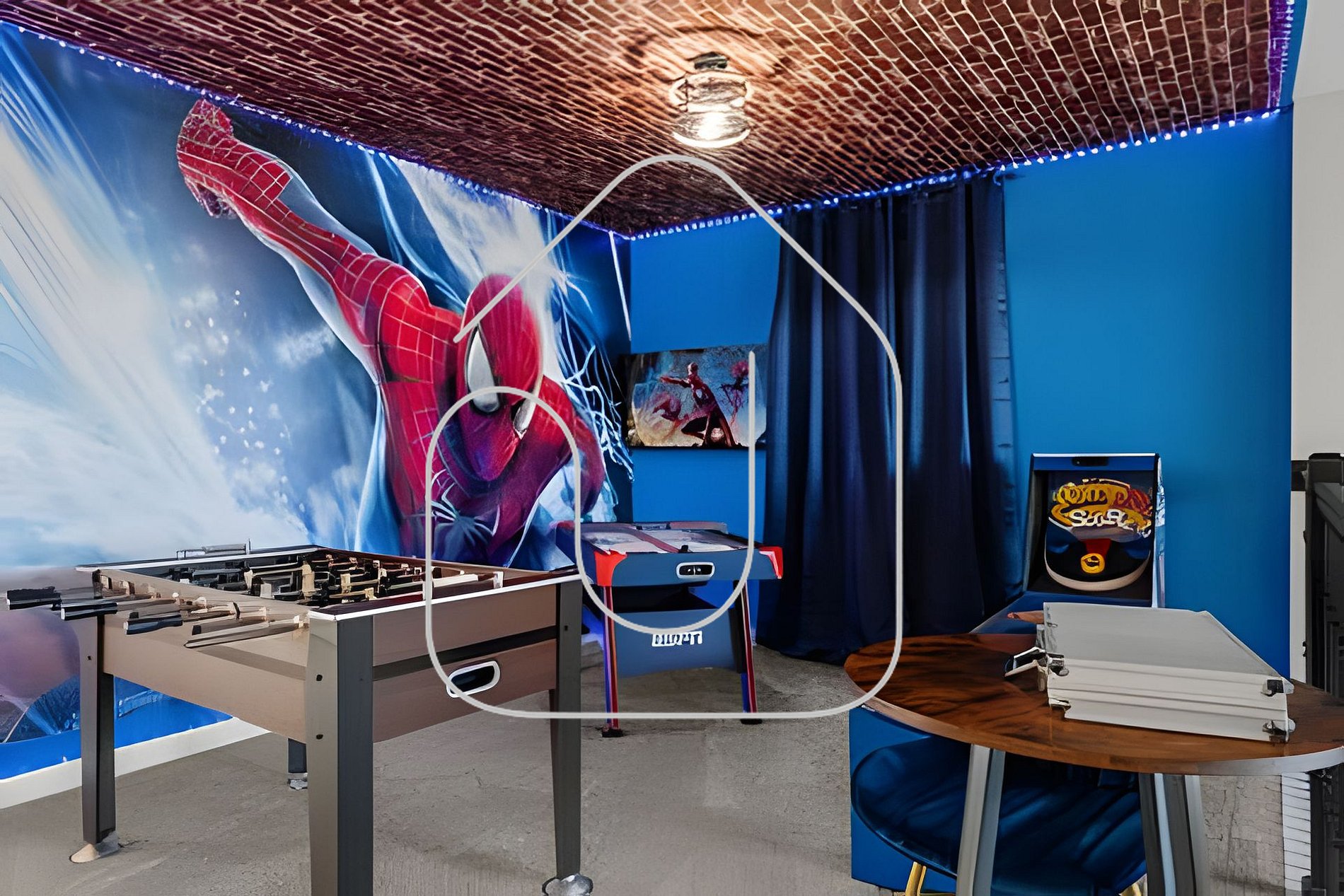 Chic 5BR/5BA home at Champions Gate with themed Harry Potter, Princess, and Mario Bros rooms, private heated pool, and a Spider-Man game room! Sleeps 14 comfortably. Enjoy full resort access, a modern open-plan layout, and 24/7 guest support.