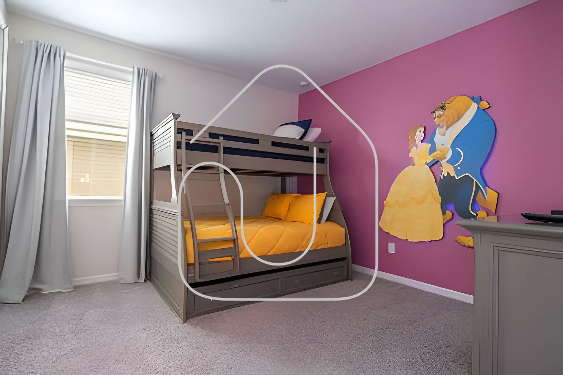 - Beauty and the Beast-themed bedroom with 1 double bed + 2 twins (bunk + trundle) (shared bathroom)