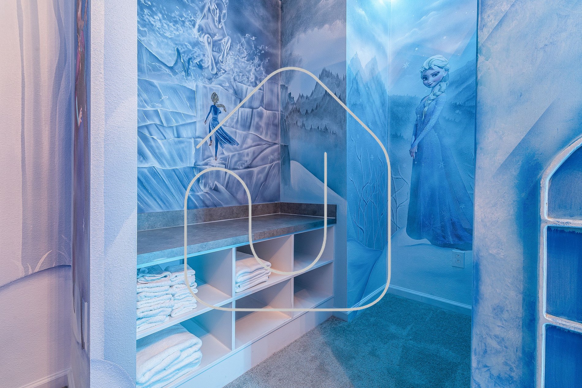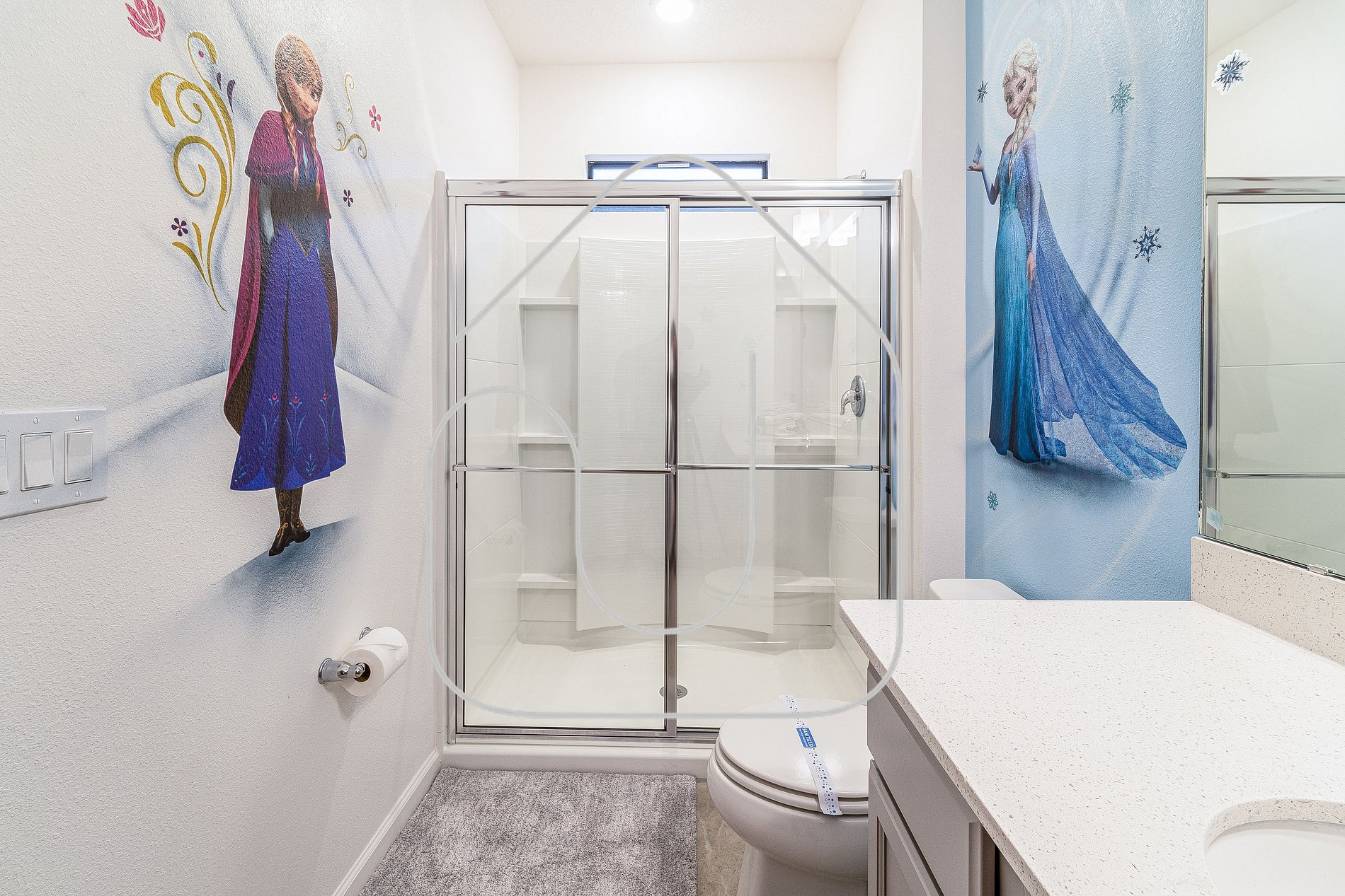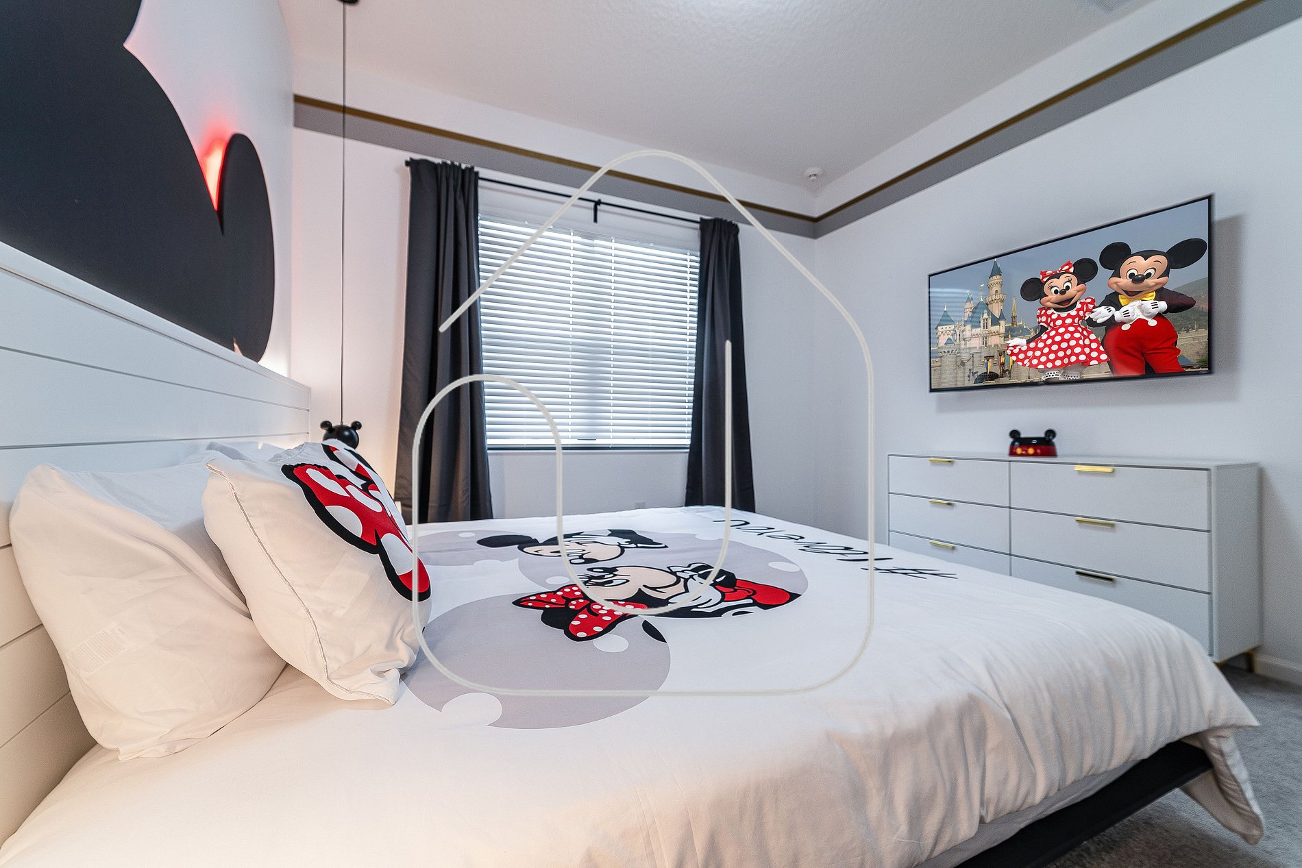 • Mickey-themed king bedroom, bathroom in hallway