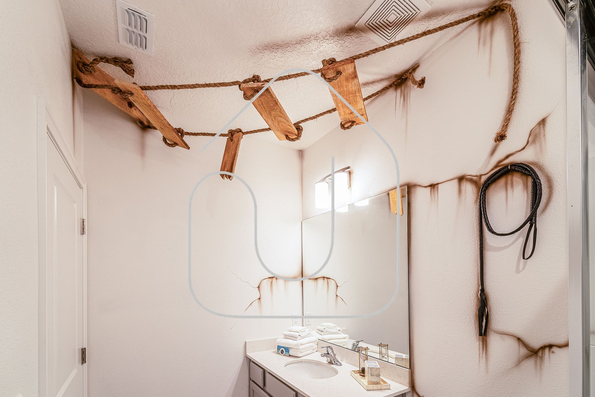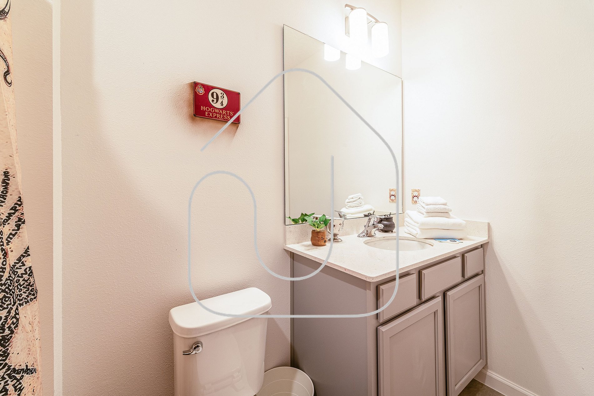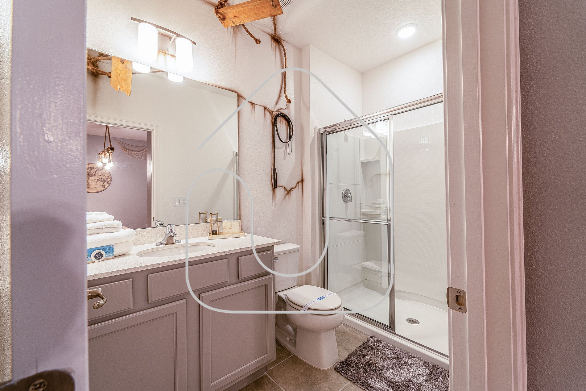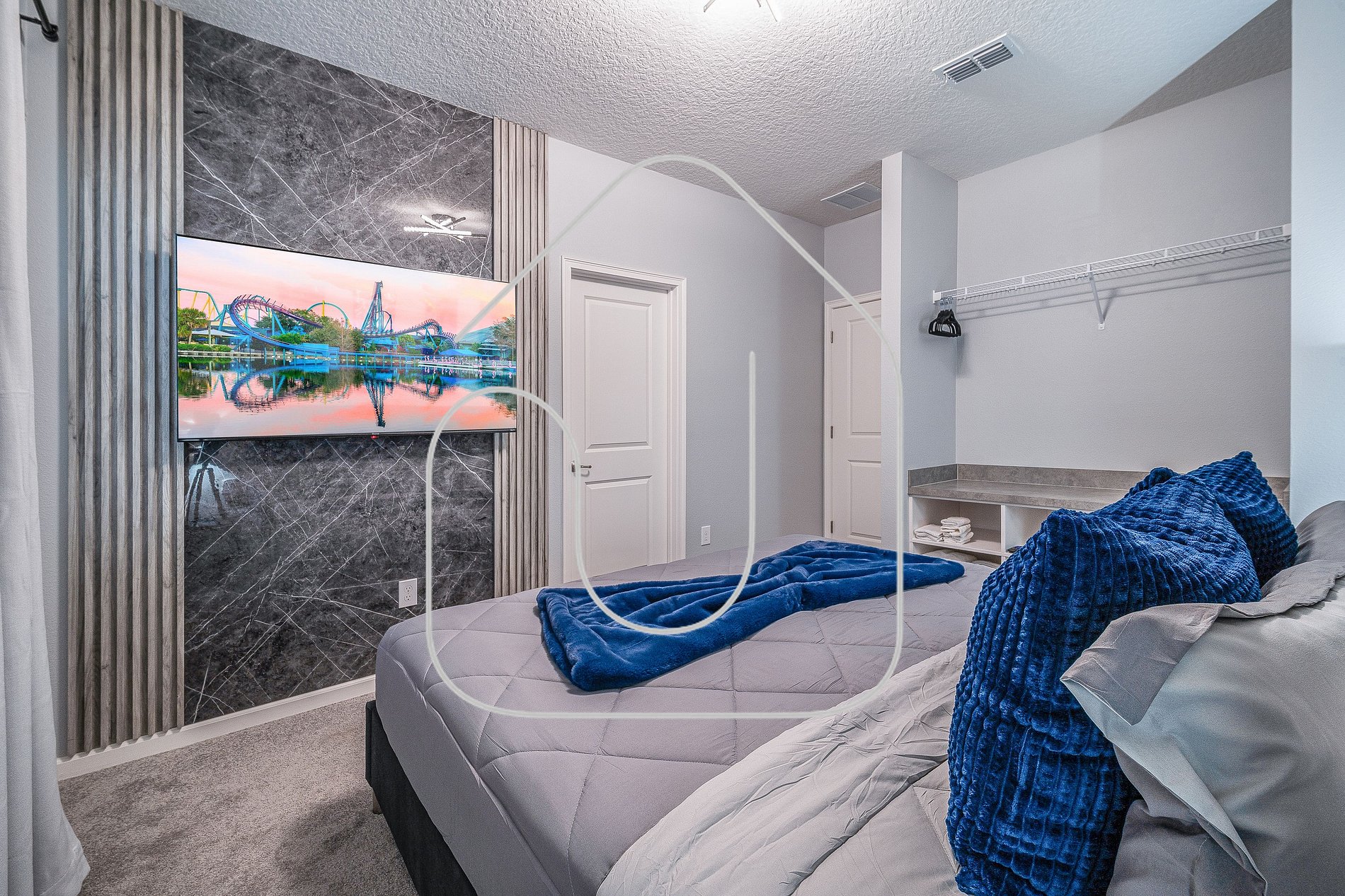 • Mickey-themed king bedroom, bathroom in hallway