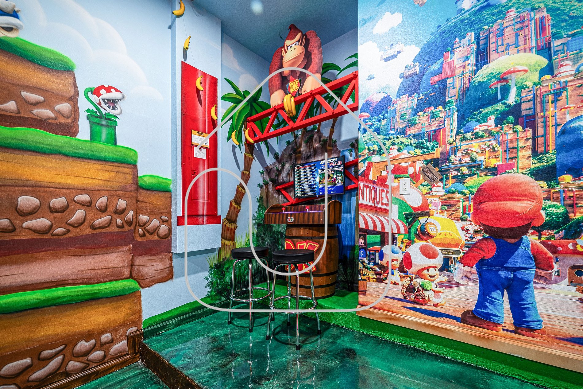• Mario Bros game room (garage)