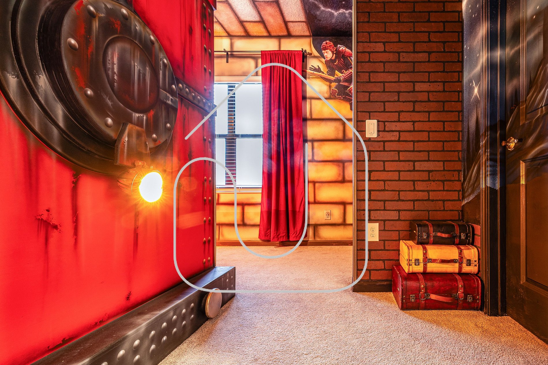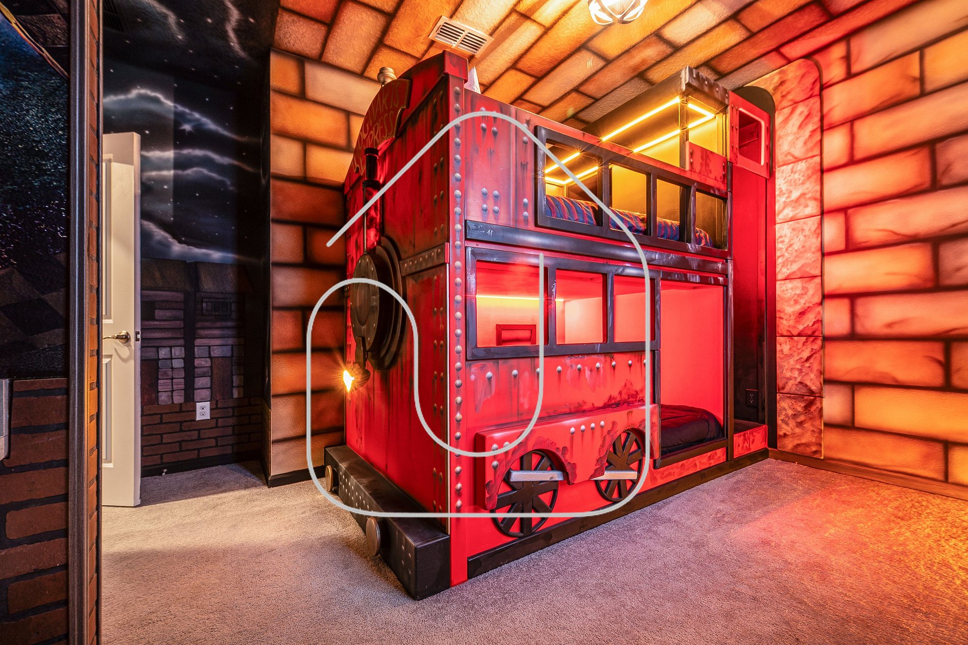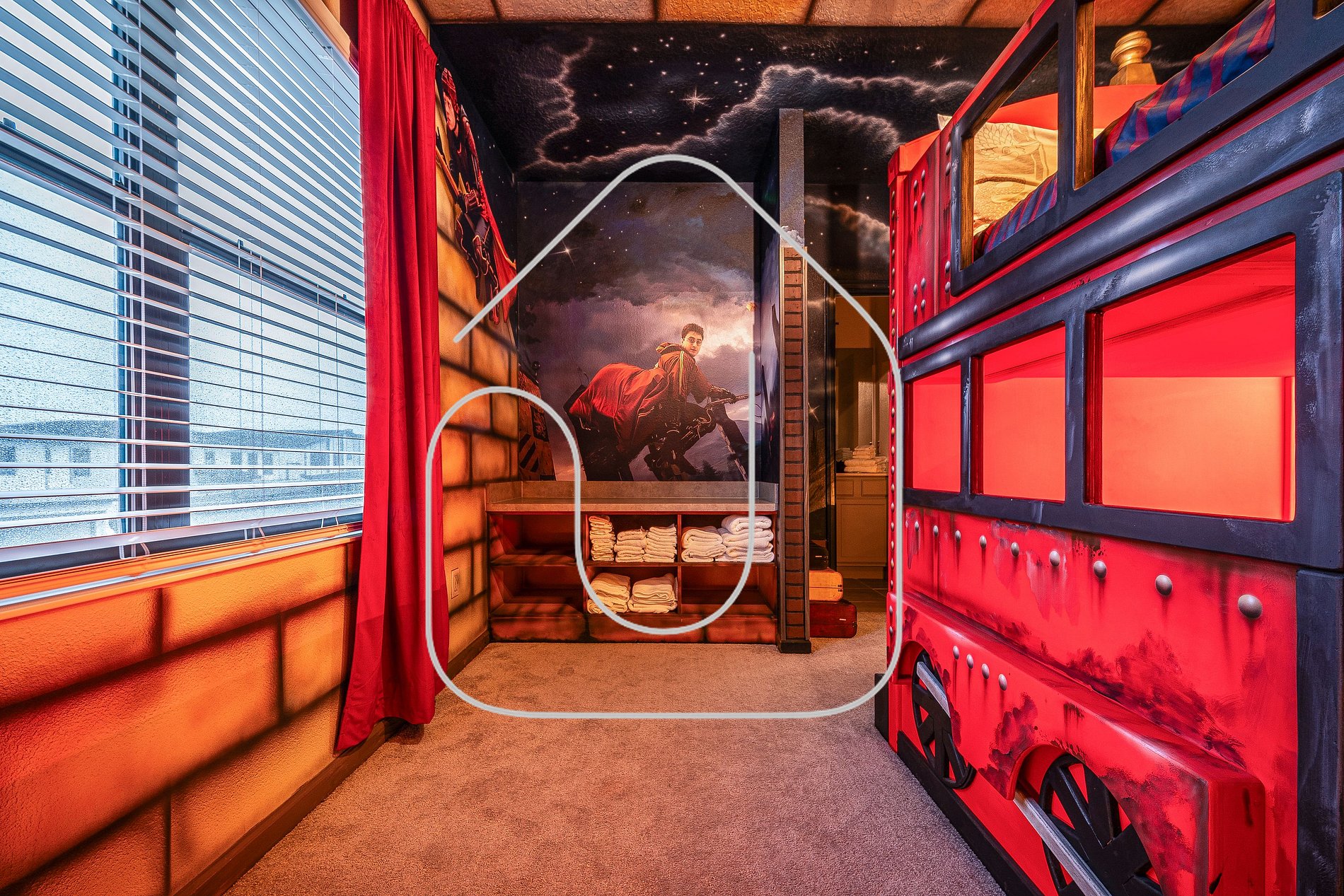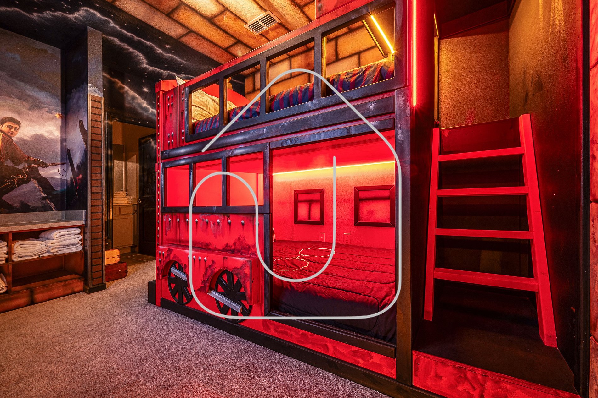 • Harry Potter bedroom, full-over-full bunk, private bathroom