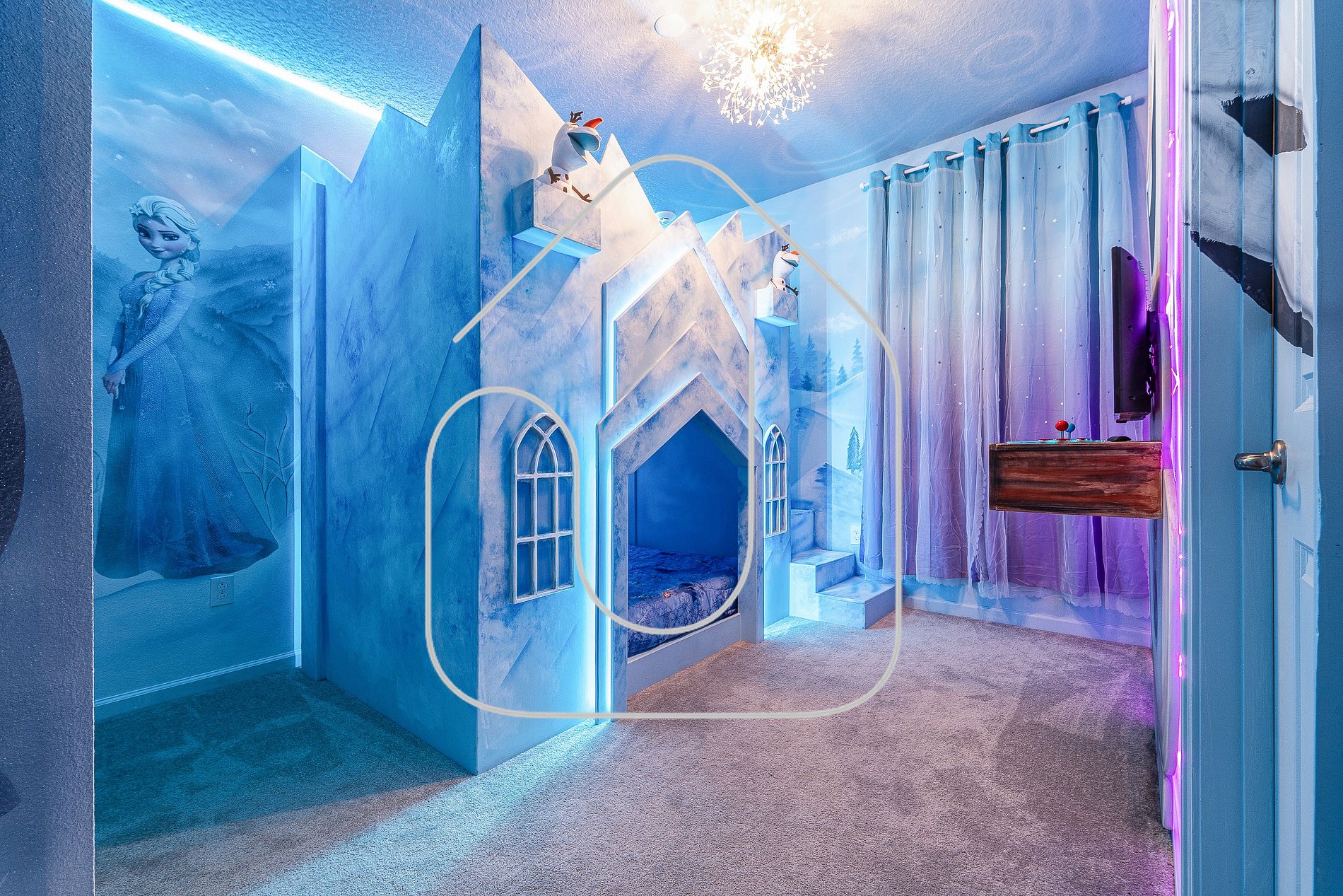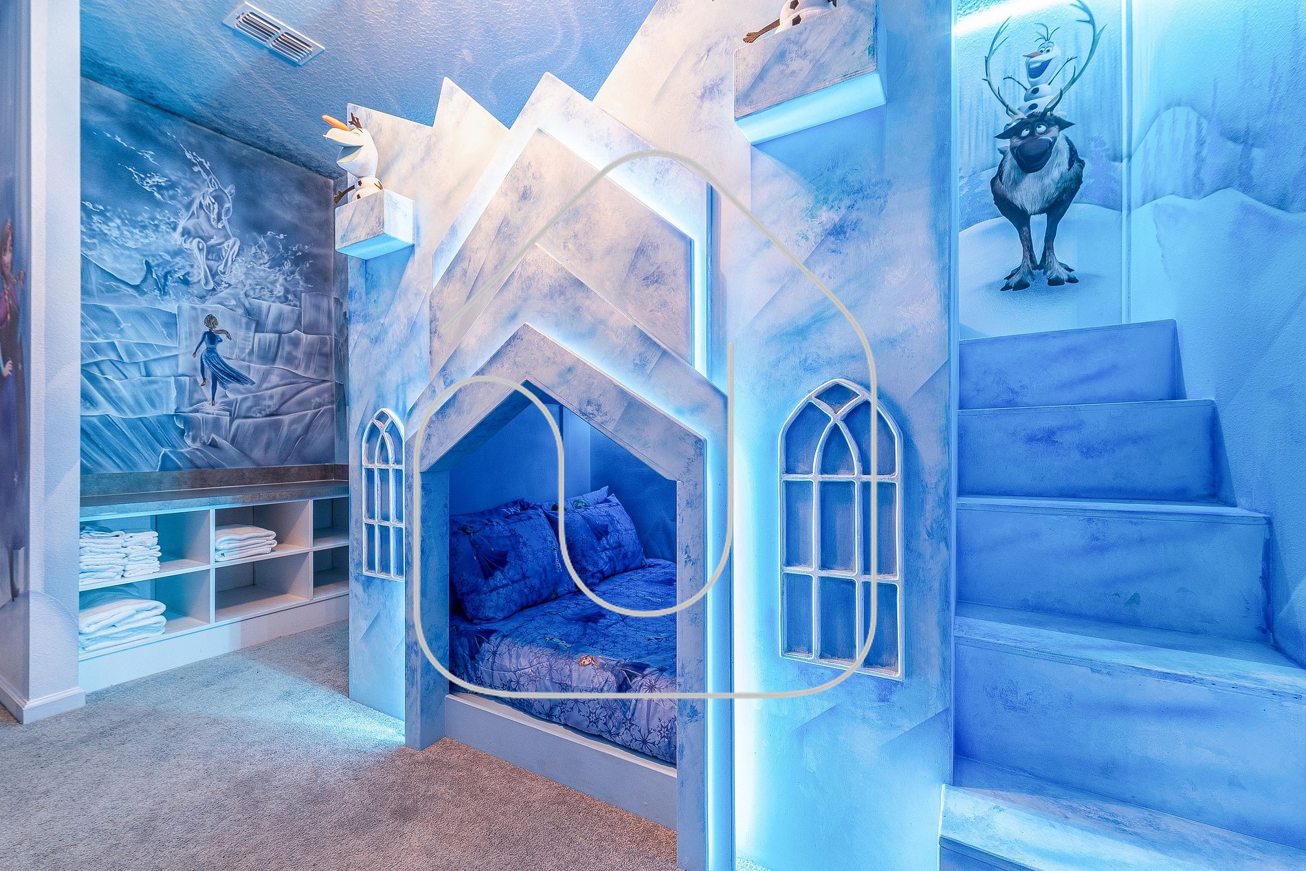 • Frozen bedroom, full-over-full bunk, private bathroom
