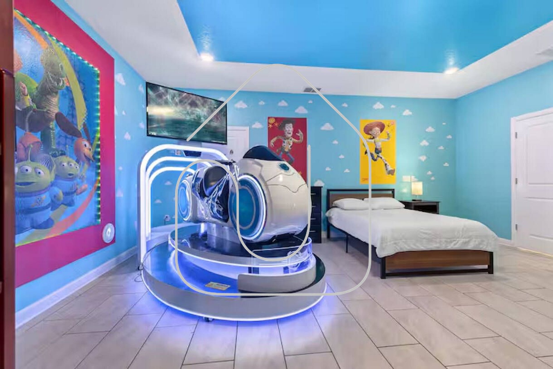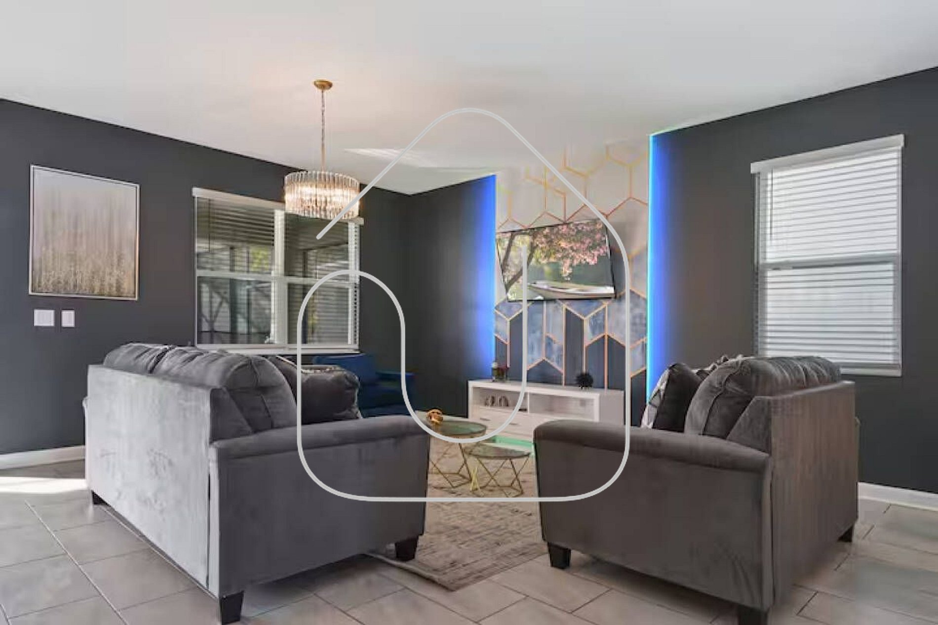Relax in your private pool and spa, enjoy family movie nights in the home theater with a 100” screen, or challenge friends in the fully equipped game room. Designed for style and comfort, this home is your perfect Orlando getaway.