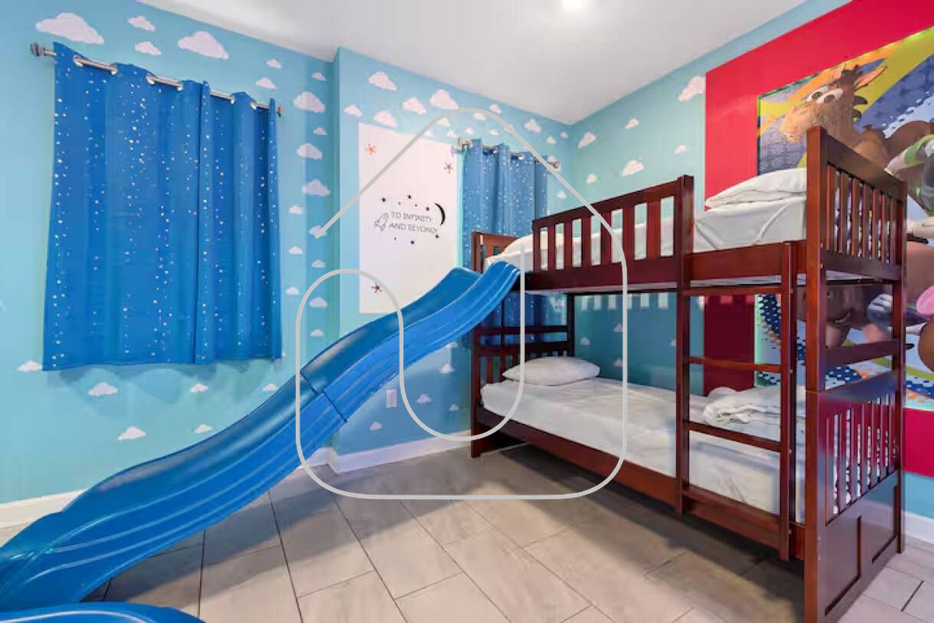 Spanning over 4,000 sq. ft., this luxurious 9-bedroom, 5-bath residence at Storey Lake Resort accommodates up to 20 guests. Perfect for families and large groups seeking luxury, comfort, and fun.