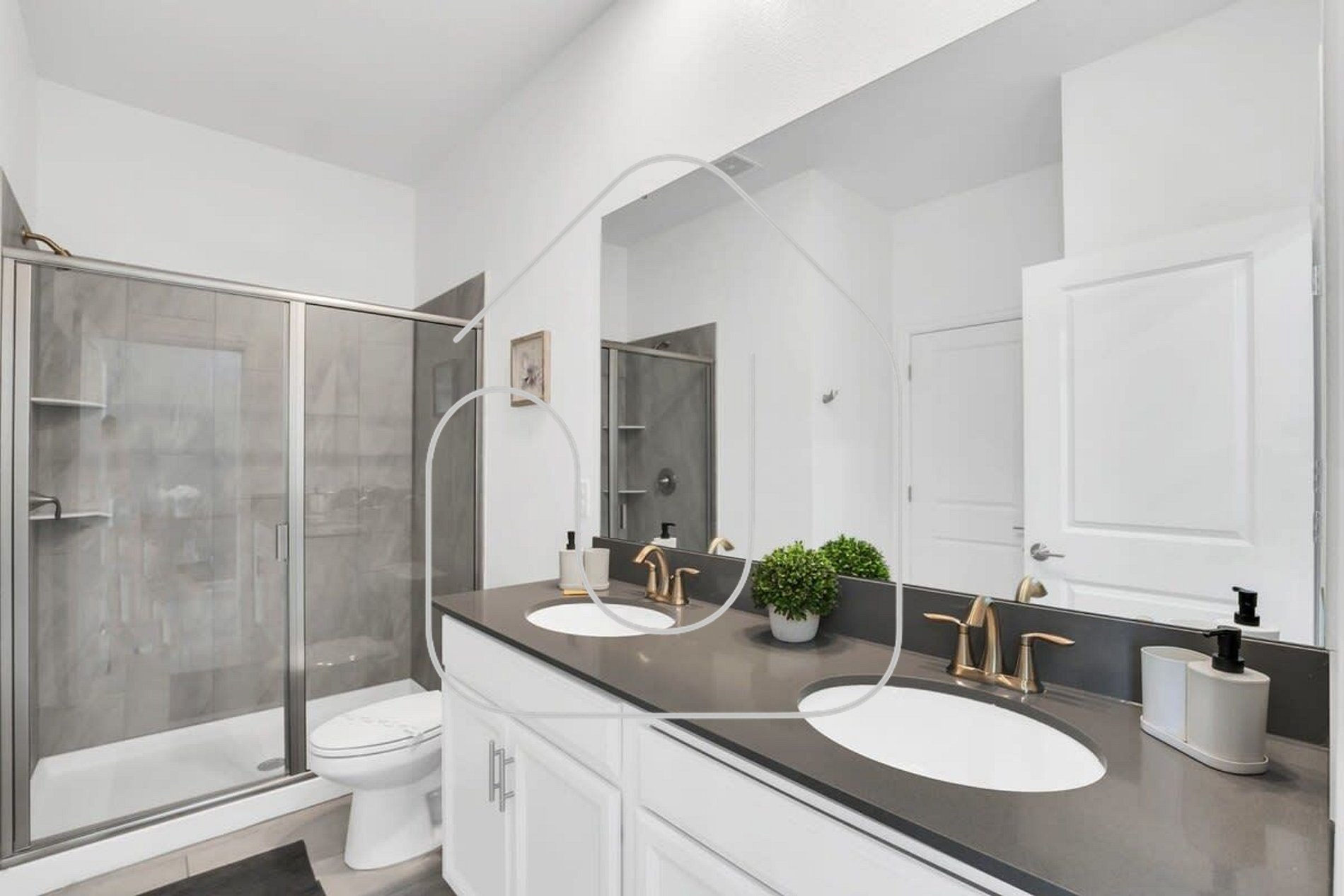 • Bedroom 2: King bed, full bathroom just outside the door