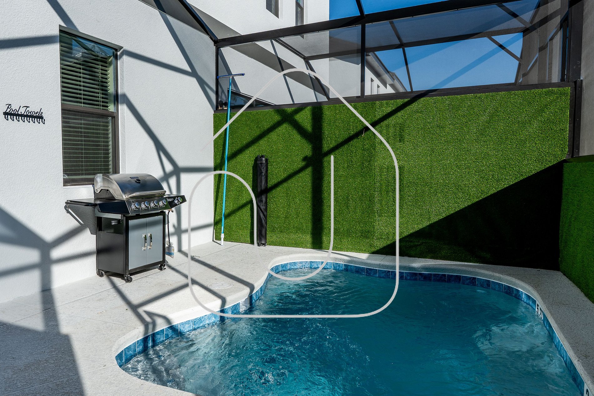 Step outside to your private screened pool, a peaceful oasis perfect for warm Florida afternoons. Lounge, swim, relax — all in total privacy. The outdoor dining area and BBQ space turn evenings into experiences, not just meals.