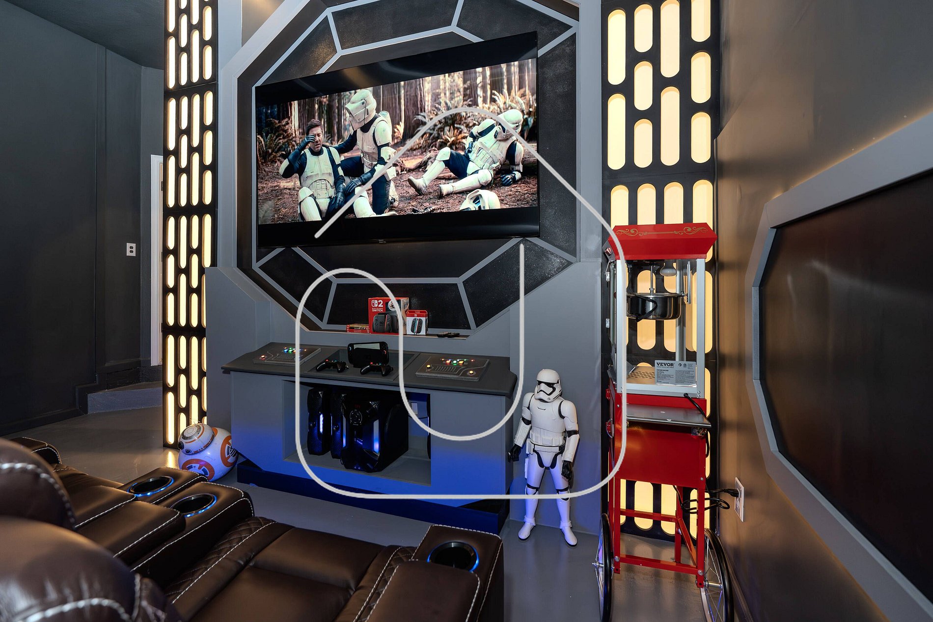 The house itself was new, well-maintained, and exactly as shown in the pictures. Our kids especially loved the Disney-themed rooms, and the home theater was a big hit for family movie nights. The backyard pool was also a great bonus and made for a relaxing way to unwind after busy park days.