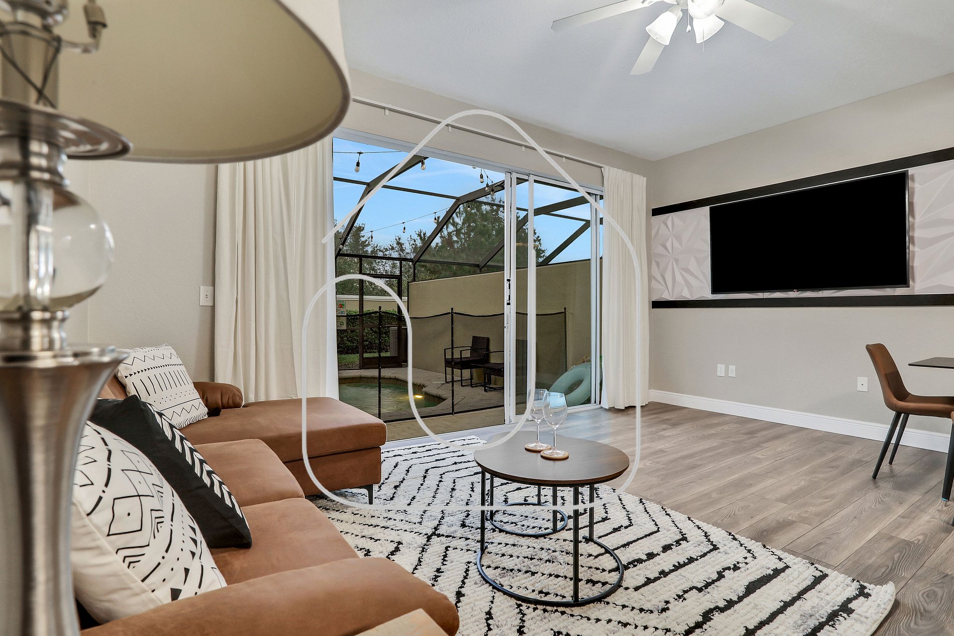 Just minutes from Disney, this renovated 3BR/3BA home offers a private pool, modern decor, and full access to Windsor Hills Resort and Water Park.