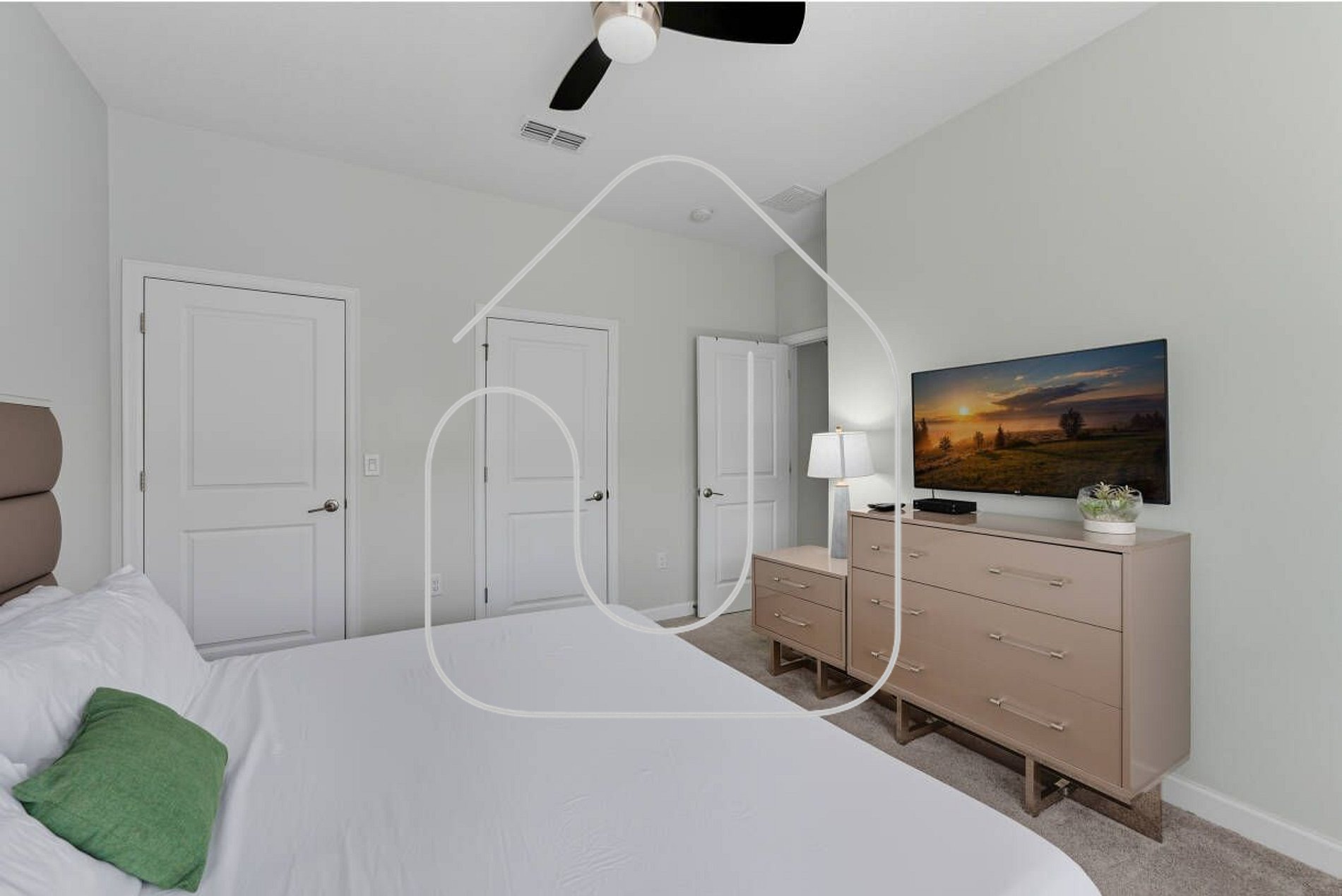 Downstairs Bedroom: 1 King bed, Smart TV, shared bathroom