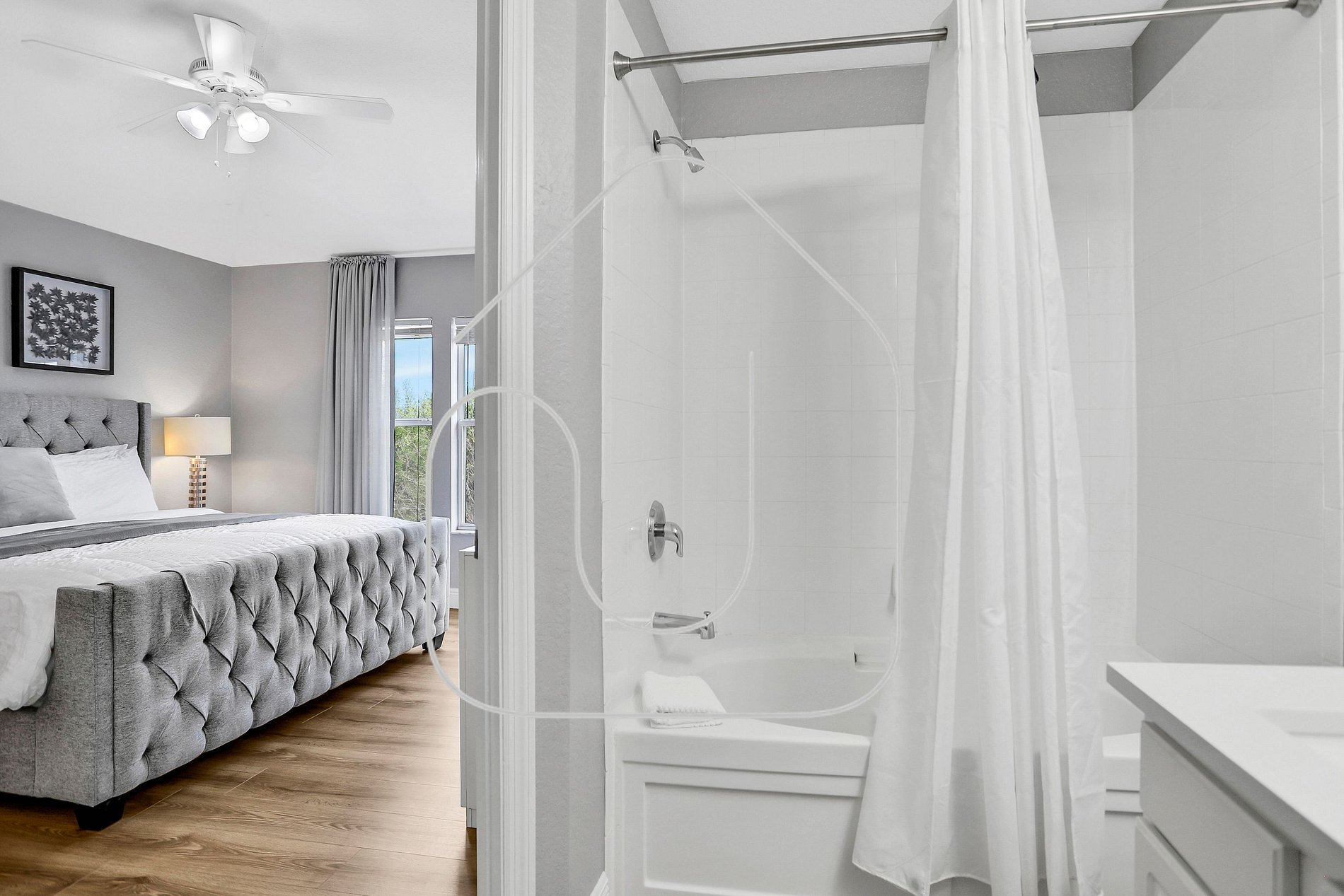 Shared bathroom with the bedroom.