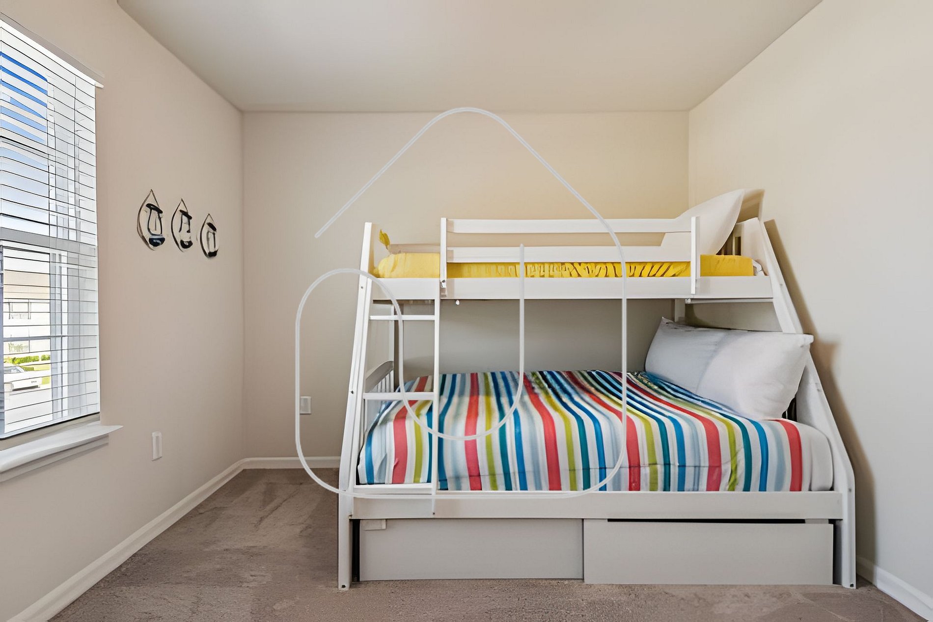 Bedroom 4: Bunk bed (Twin over Full) + Smart TV + shared bathroom