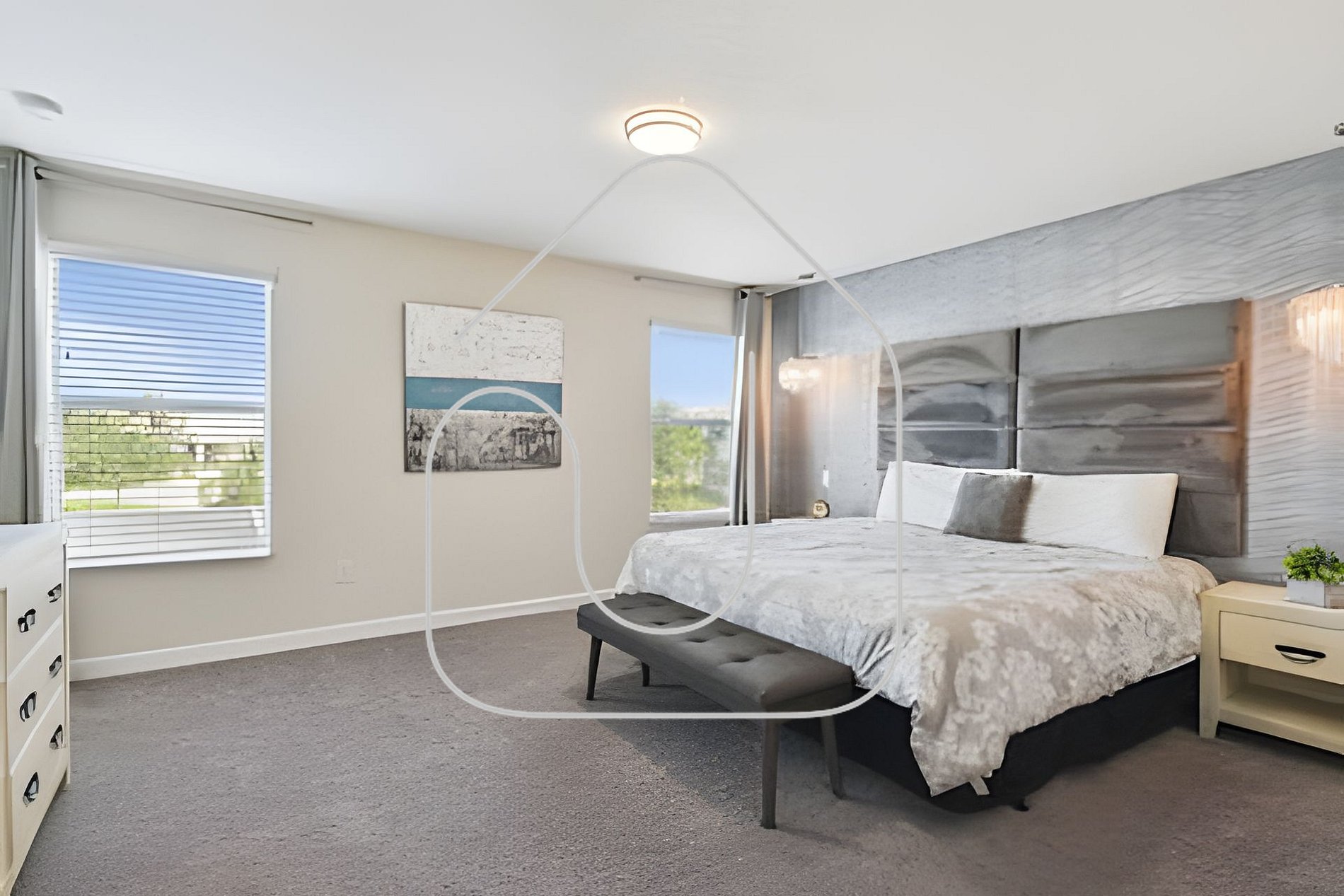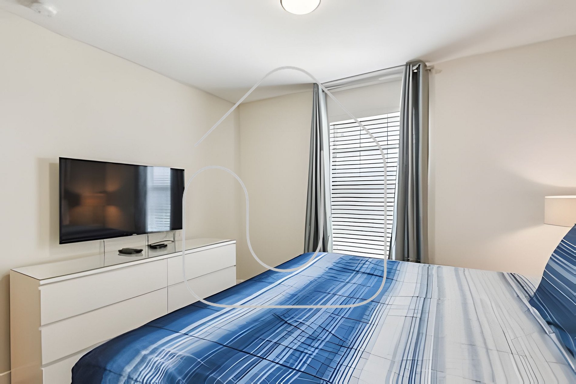 - Master Suite 2: King bed, Smart TV, closet, private bathroom
