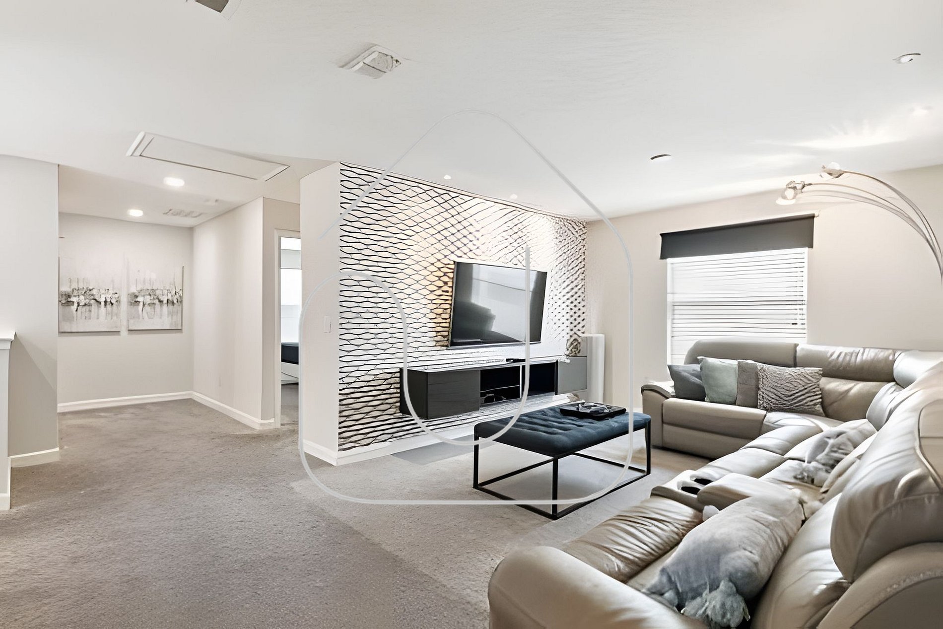 TV room with 6-seater sofa, loveseat & Smart TV