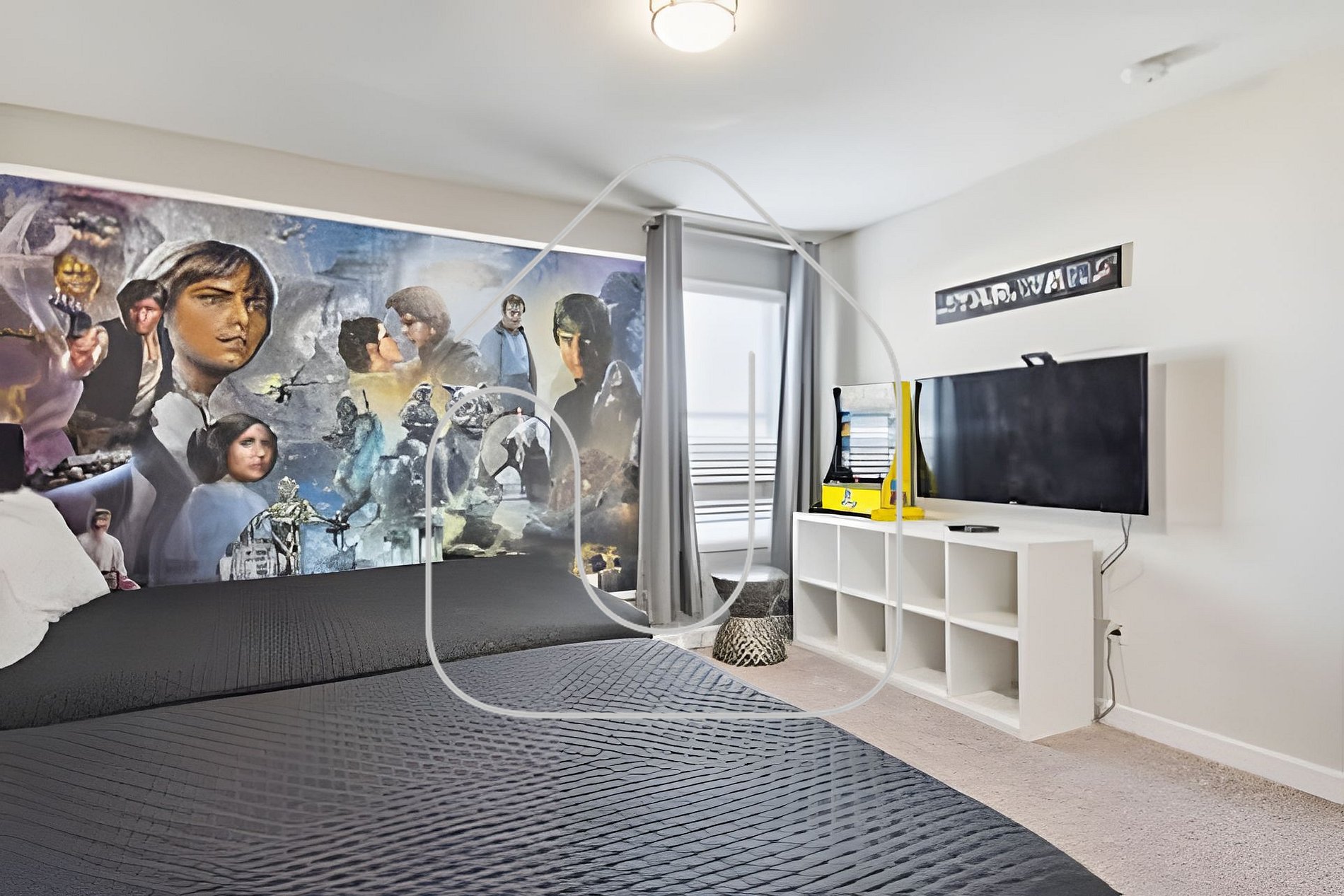 - Star Wars Room: 2 Full beds, Smart TV, shared bathroom