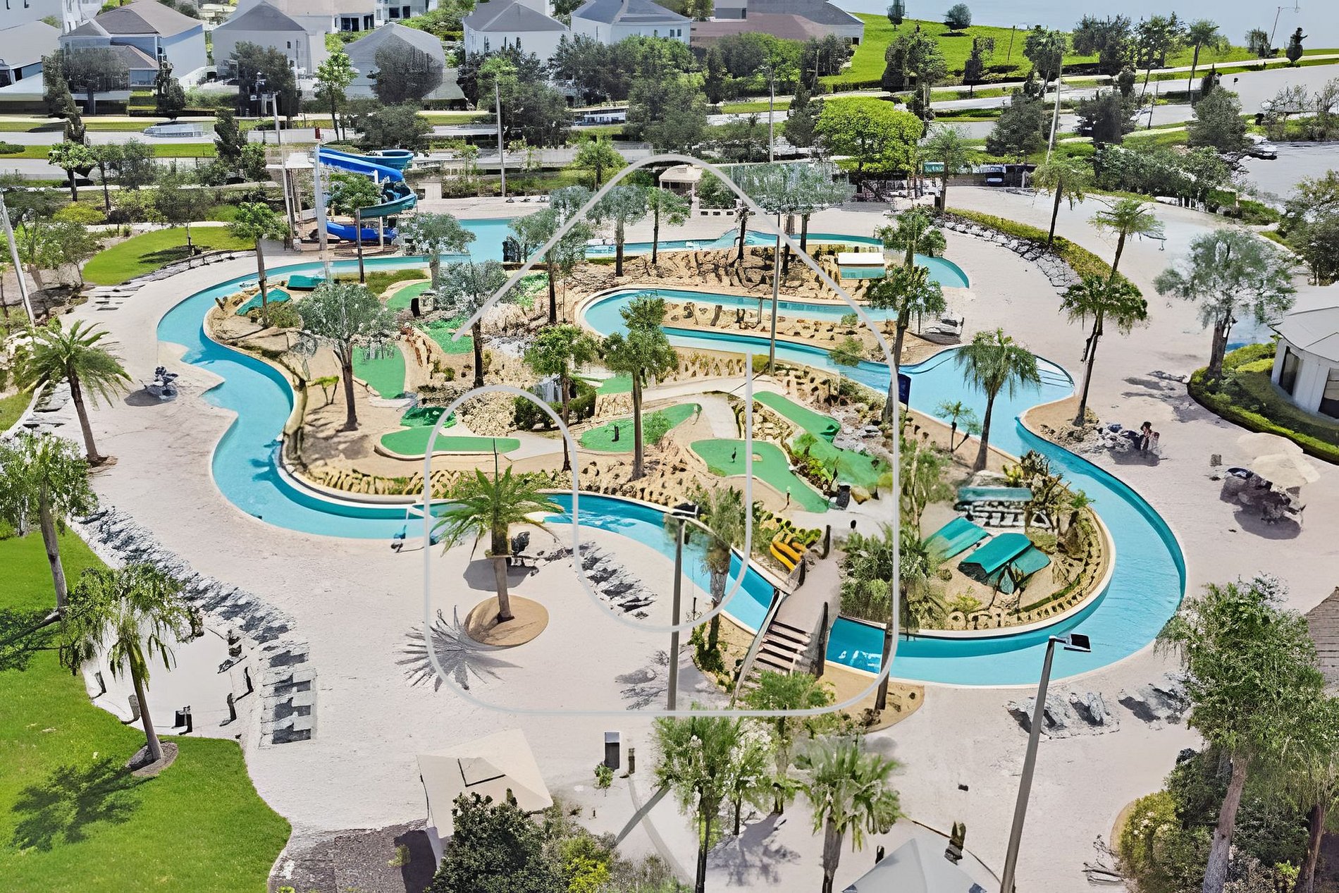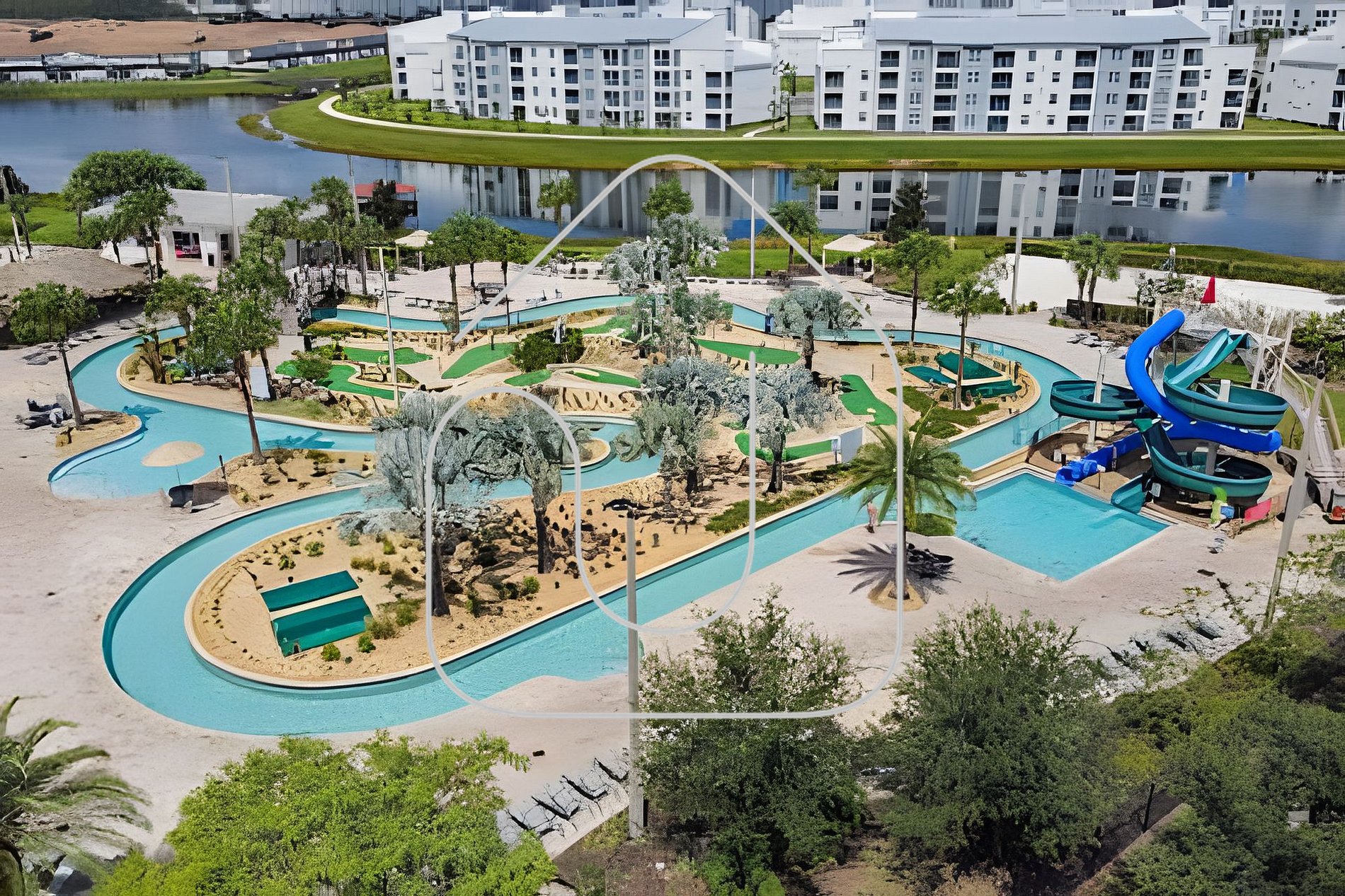 - Resort-style pool with lazy river & slides