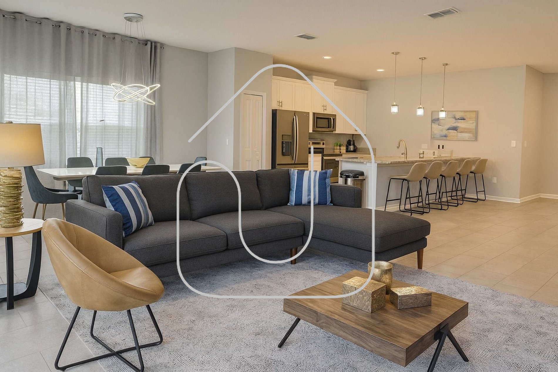 Modern 5BR/4BA home at Storey Lake Resort, sleeps up to 13 guests. Less than 20 minutes from Disney, this spacious retreat features 2 master suites, themed bedrooms, private pool, fully equipped kitchen, dining for 12, fast WiFi, and washer/dryer.