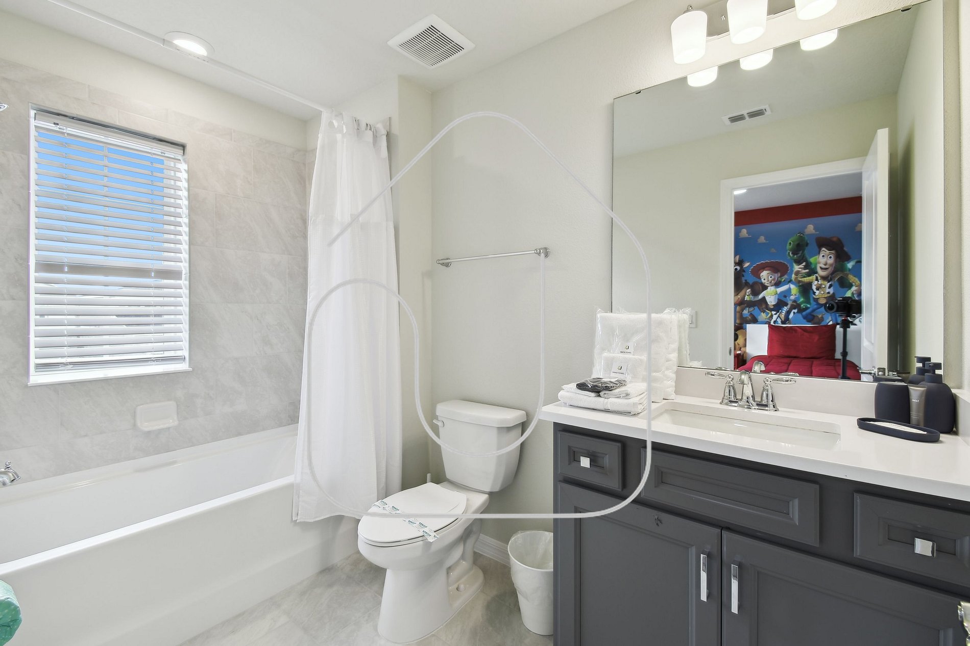 Stay in style at this 5-bedroom, 4-bathroom home where every bedroom is a suite! Located in the exclusive Windsor Cay Resort, this vacation retreat offers a private pool, a fun Avengers-themed game room, and two magical themed bedrooms (Mario Bros & Toy Story). Comfortably sleeps 14 guests with luxury and privacy for everyone. Just 20 minutes from Disney and close to Orlando’s top attractions. Enjoy free WiFi, modern amenities, and more!