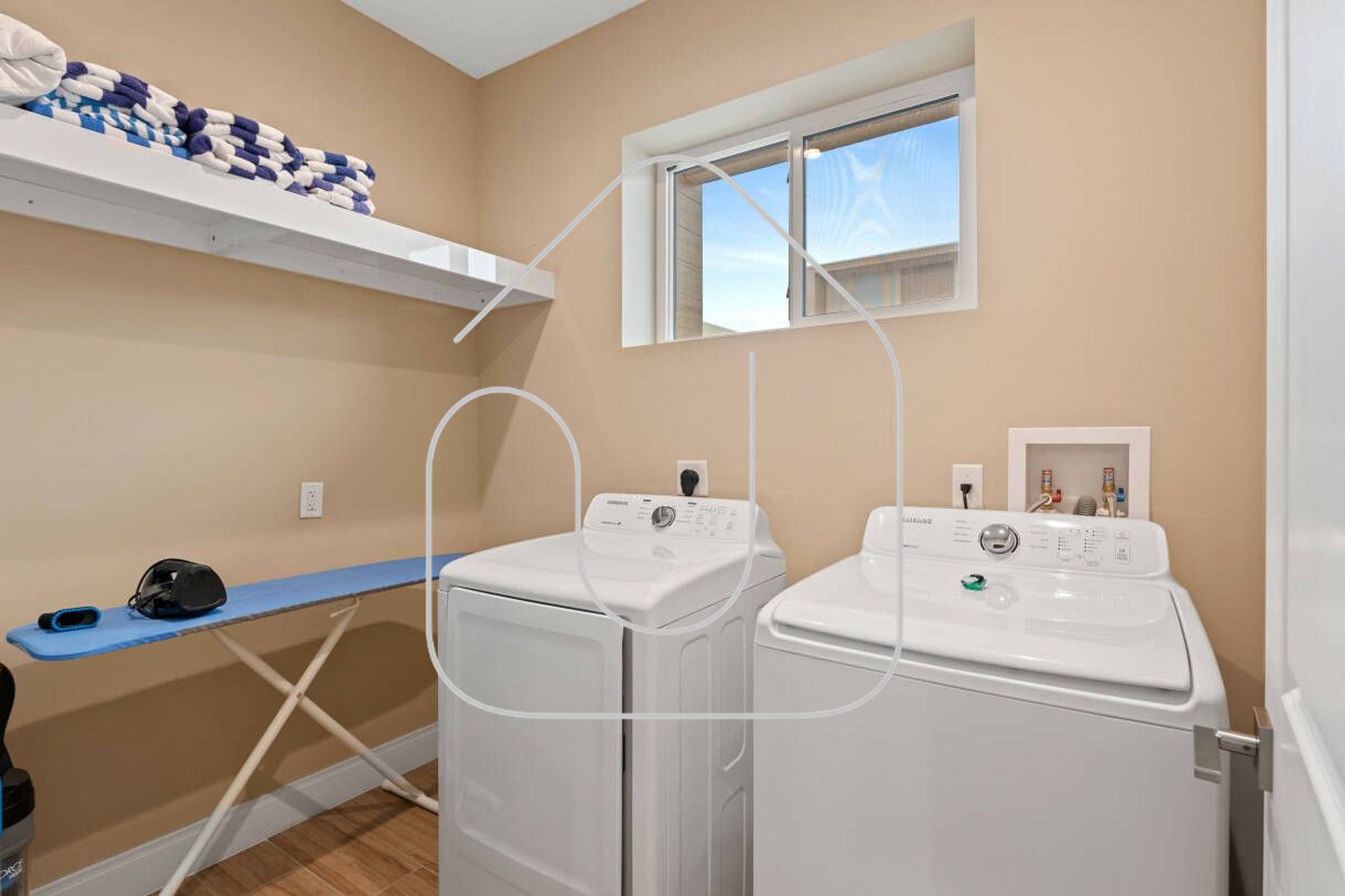 1. The following items are left at the house for your arrival: 1 shampoo, 1 rinse cream, 1 soap, and 2 toilet papers in each bathroom. In the kitchen 2 bag and garbage, 2 dishwasher soap, and a paper towel. In the laundry room 2 soaps for washing clothes.