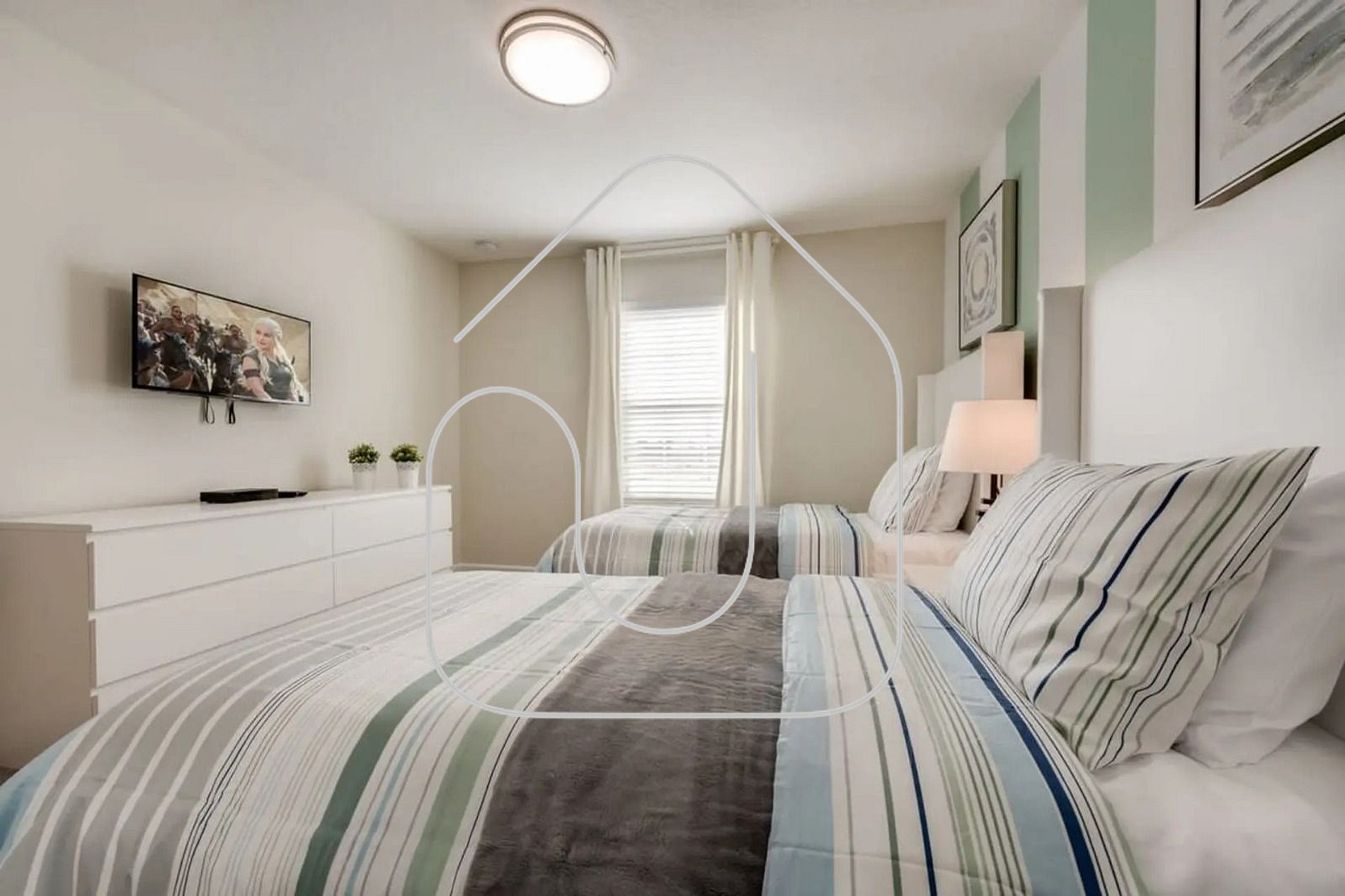 Bedroom 4 (Upstairs): 2 Twin beds — shares a full bathroom with Bedroom 3