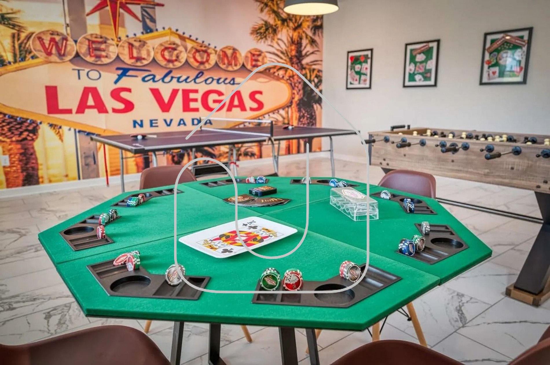 Vegas-Themed Game Room – Challenge your friends with exciting games in our Las Vegas-inspired game room.
