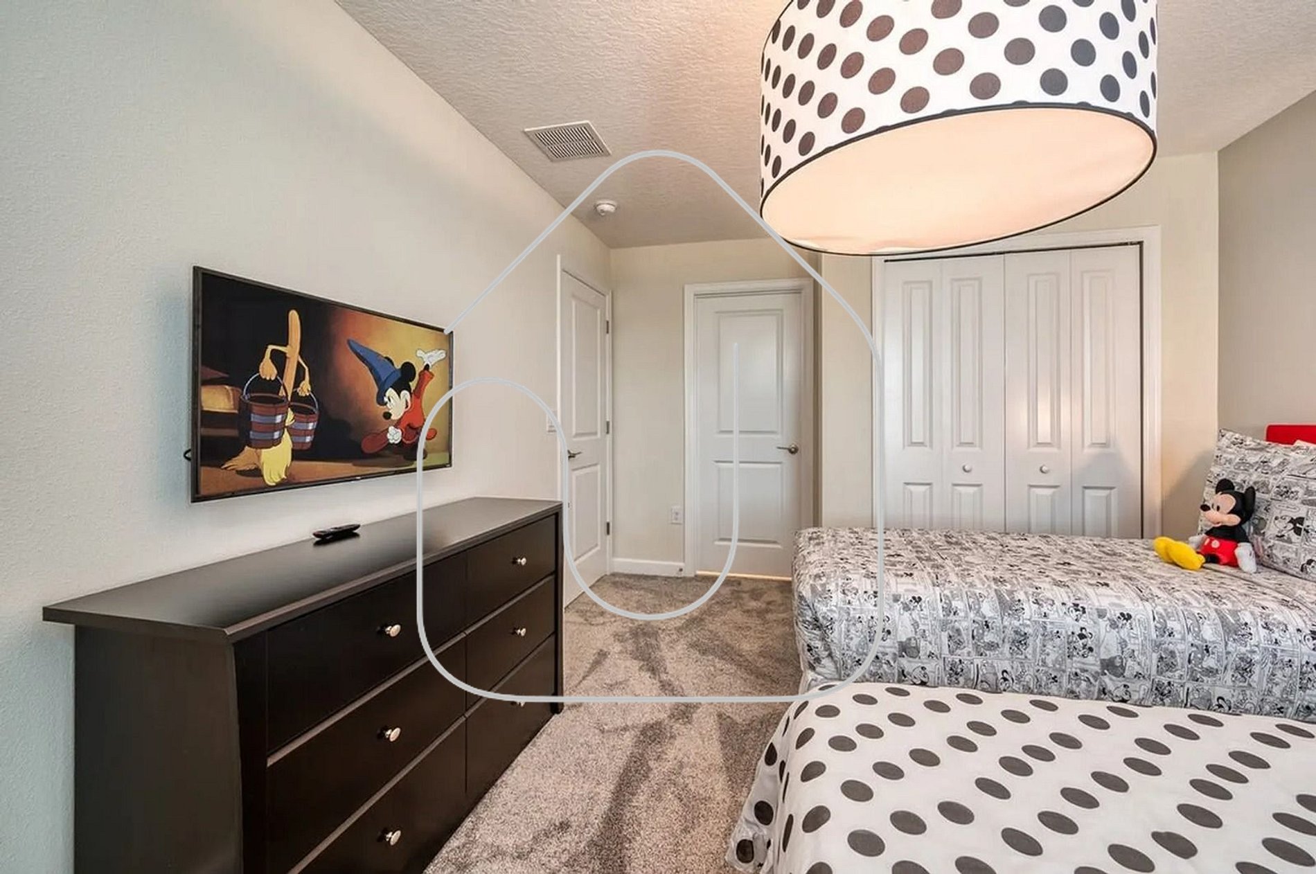 Mickey-Themed Room – 1 Double bed + 1 Single bed