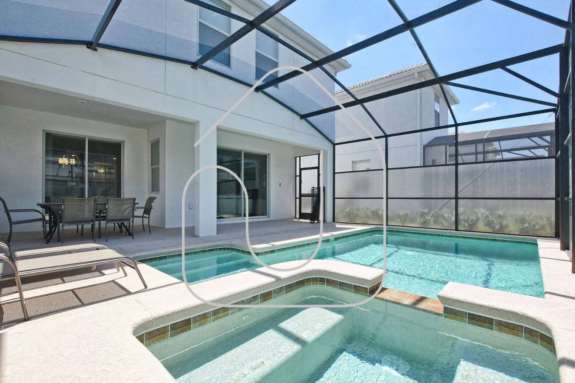 -Cozy patio with private heatable pool (additional fee), perfect for relaxing after a day at the parks.