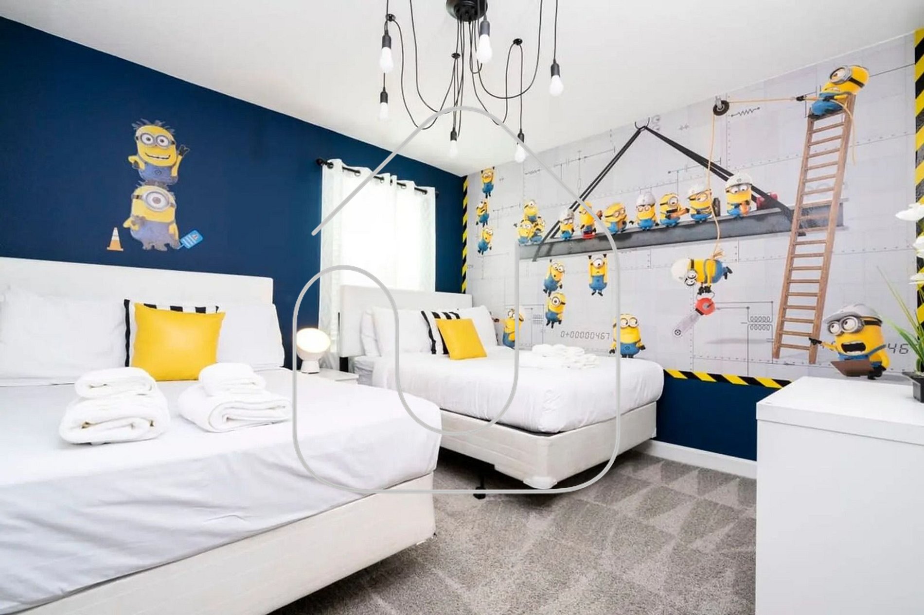 -1 Minions-themed bedroom with two Full beds – bright and playful.
