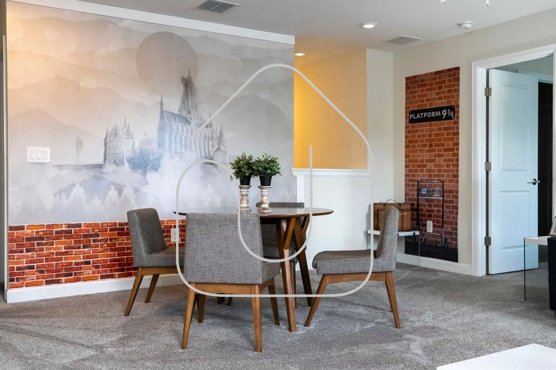 -Upstairs family room with Harry Potter theme – a magical hangout spot.