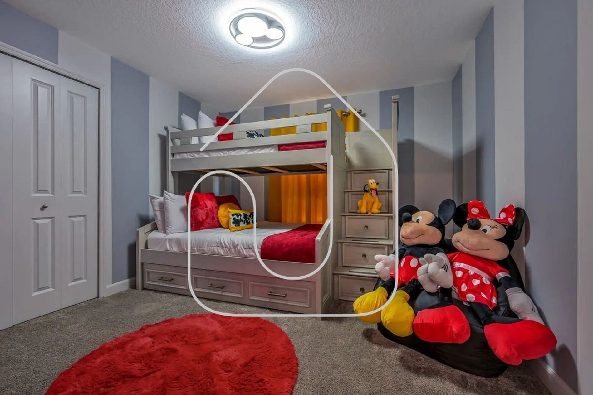 Enjoy an unforgettable stay in this 5-bedroom themed home at Storey Lake Resort, just 10 minutes from Disney. Designed for family fun, it features a private pool, Moana and Mickey-themed bedrooms, and access to incredible resort amenities like a lazy river, splash pad, and tiki bar. With space, comfort, and unbeatable location, this is the perfect base for your magical Orlando vacation. Book now and create lasting memories!