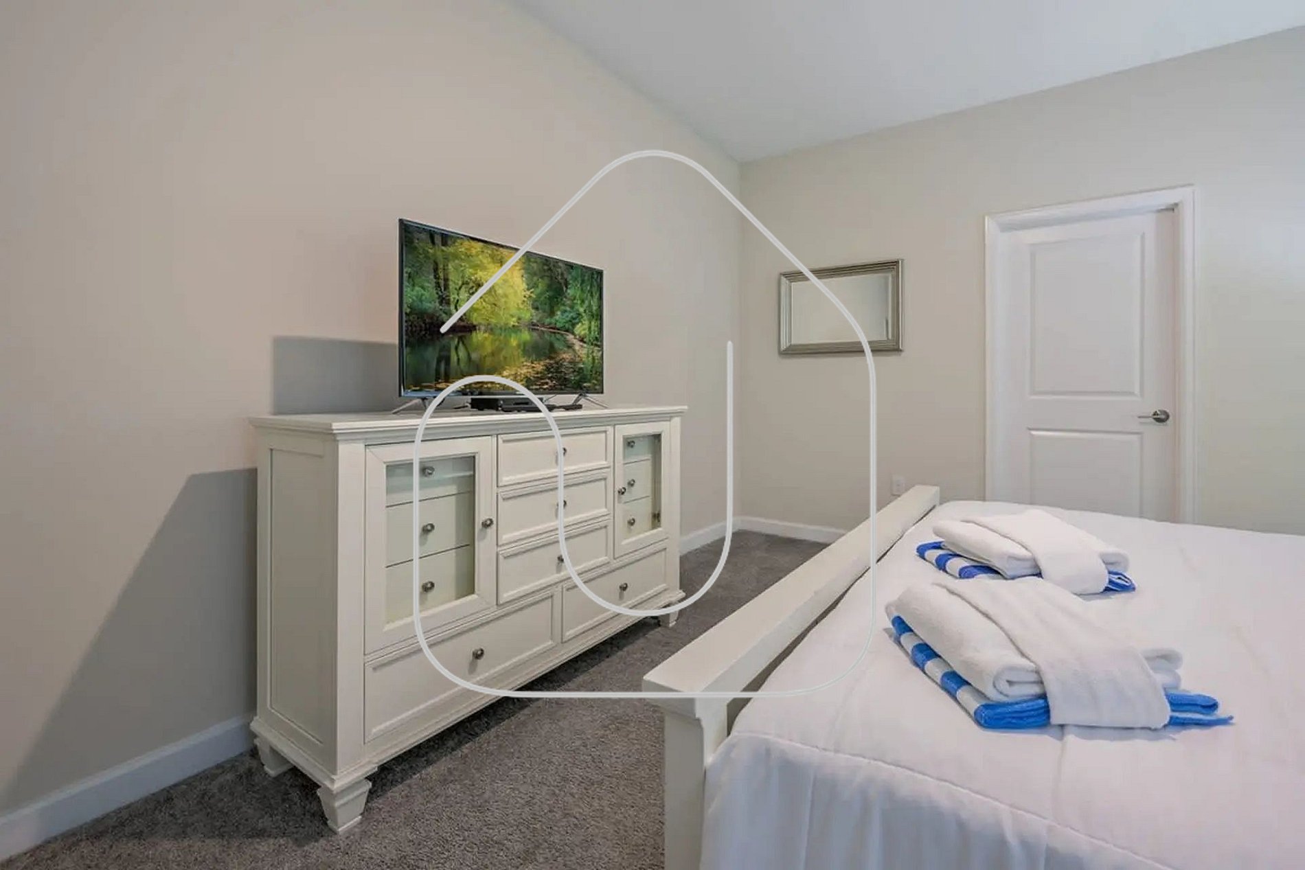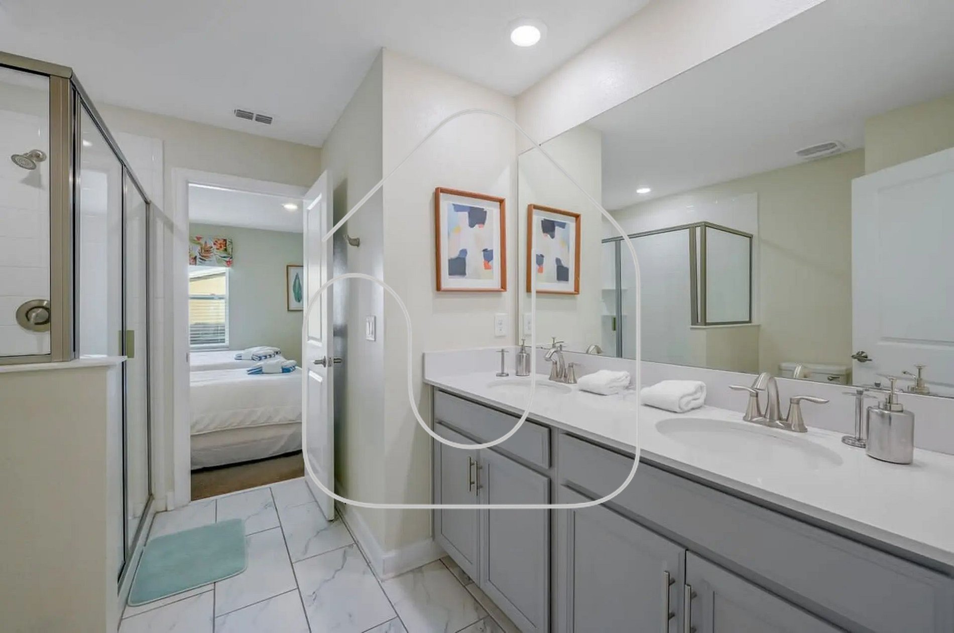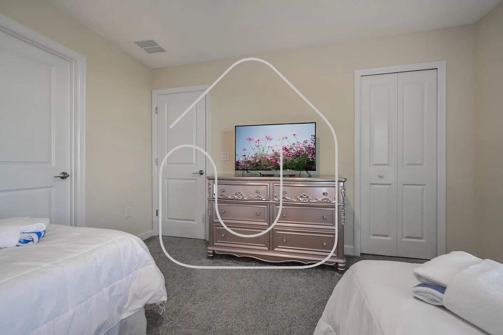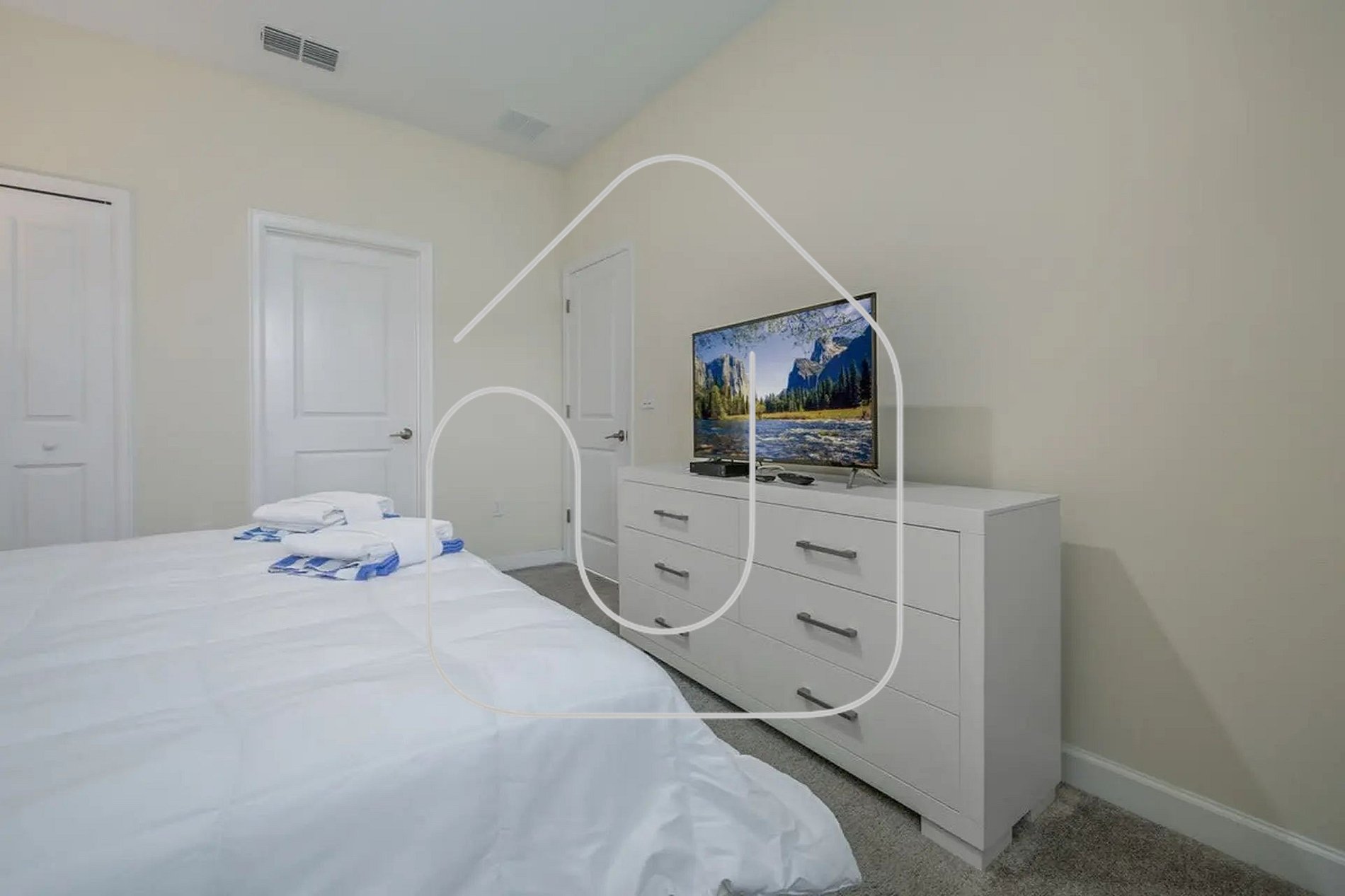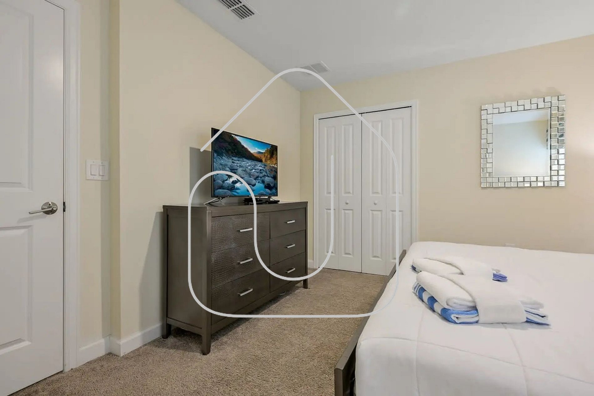 Guests have full access to the house and resort common areas, including the clubhouse with resort-style pool, lazy river, water slides, tiki bar, fitness center, mini-golf, and more.