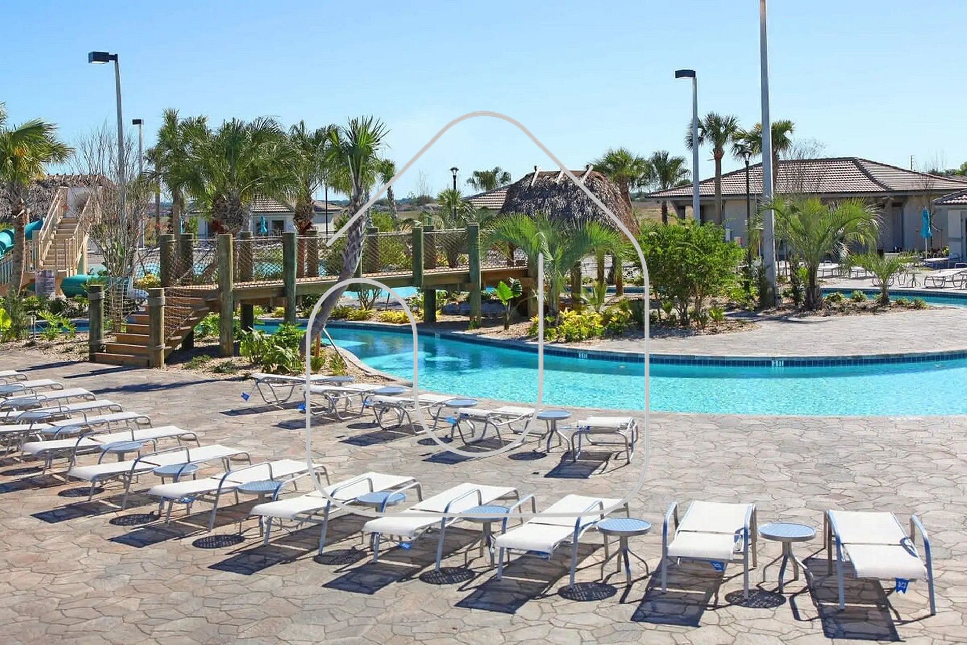 Resort-style pools with water slides.
