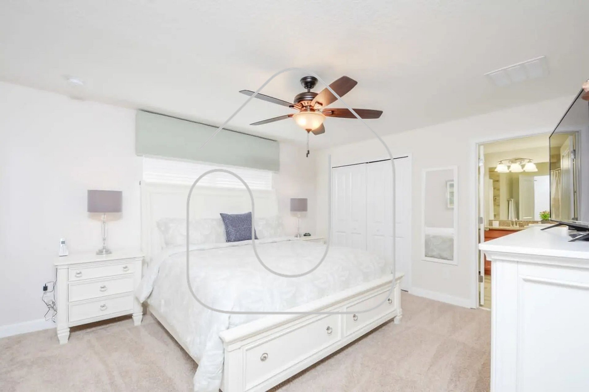 Bedroom 1: King bed + private bathroom