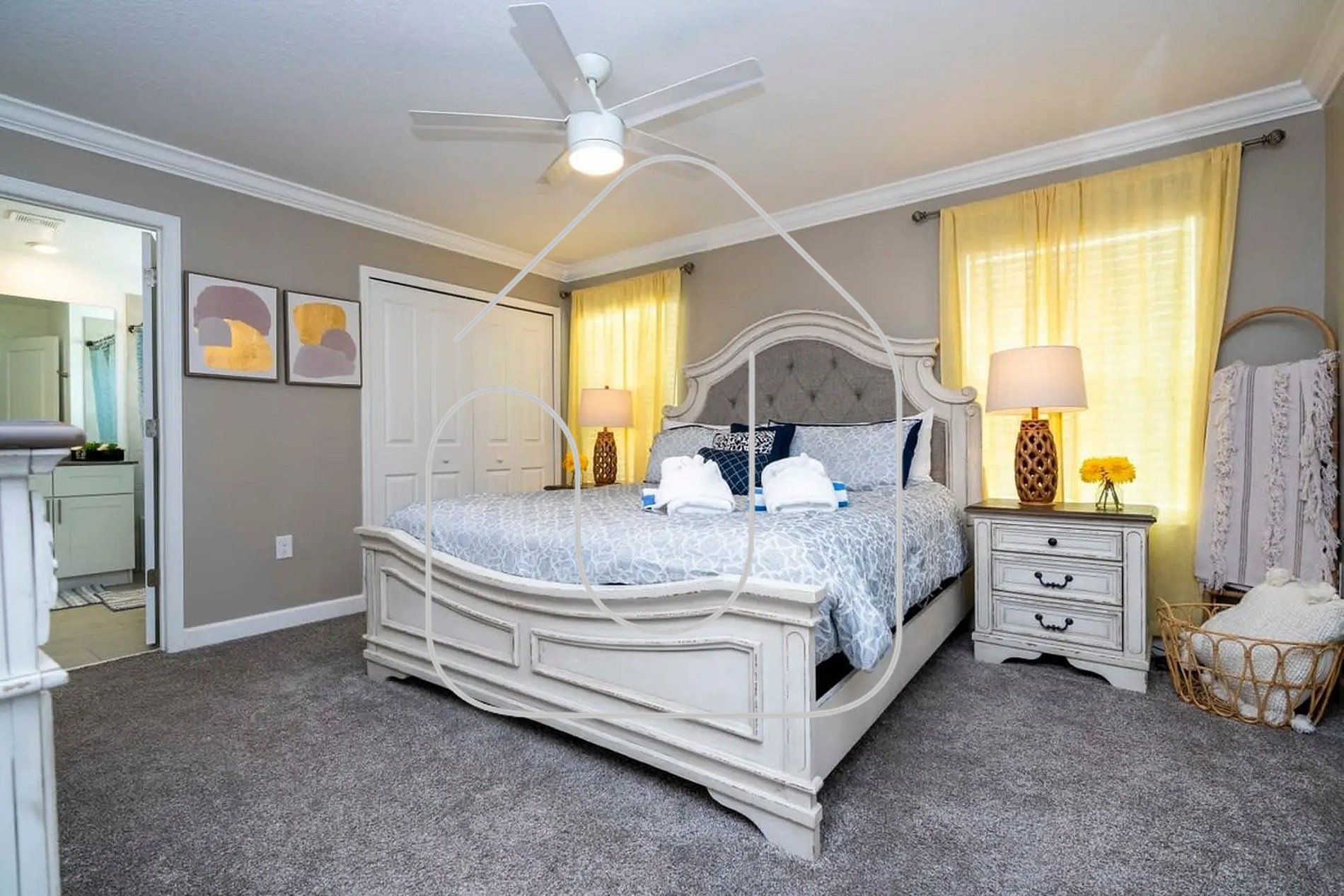 Just 5 miles from Disney, this modern family home in Storey Lake is perfect for unforgettable vacations. It features 4 bedrooms including a magical themed one, 3 bathrooms, and a private heated pool. Enjoy the best of resort-style living with full amenities, comfort, privacy, and 24/7 support. Guests also have access to the clubhouse with lazy river, water slides, gym, sports courts, and more.