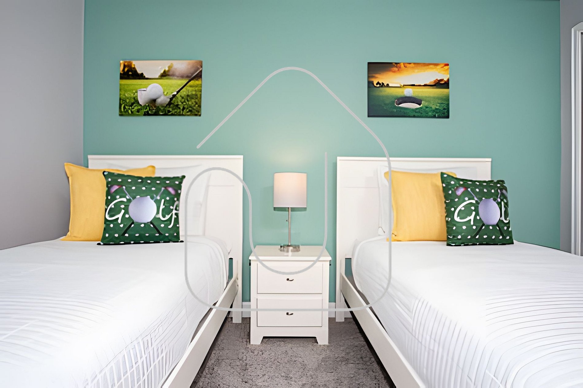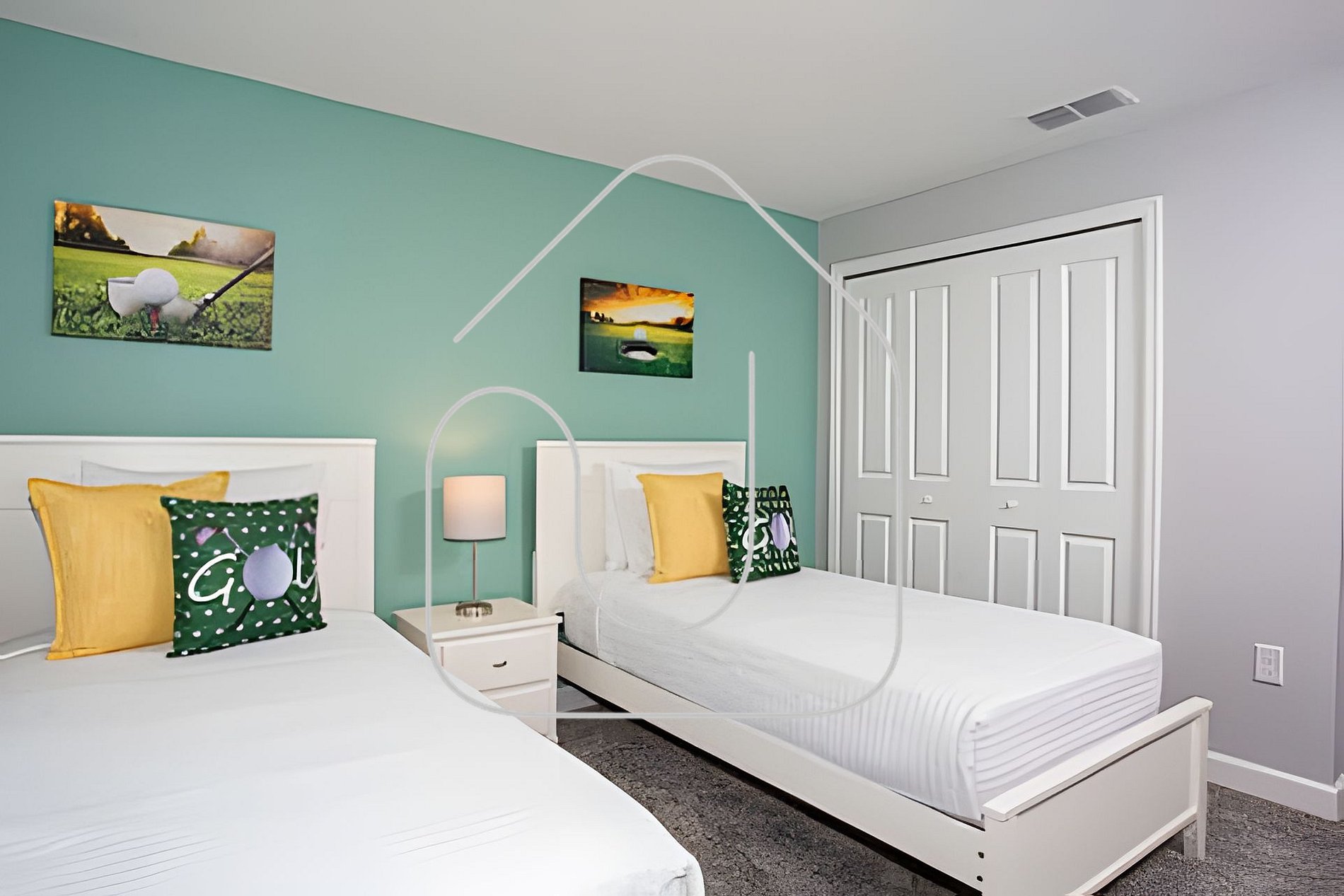 -2nd Floor: Golf-themed bedroom with 2 twin beds