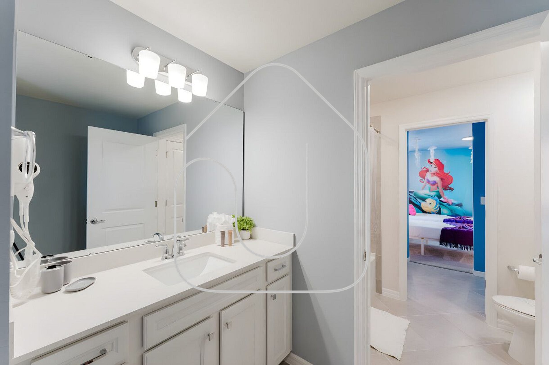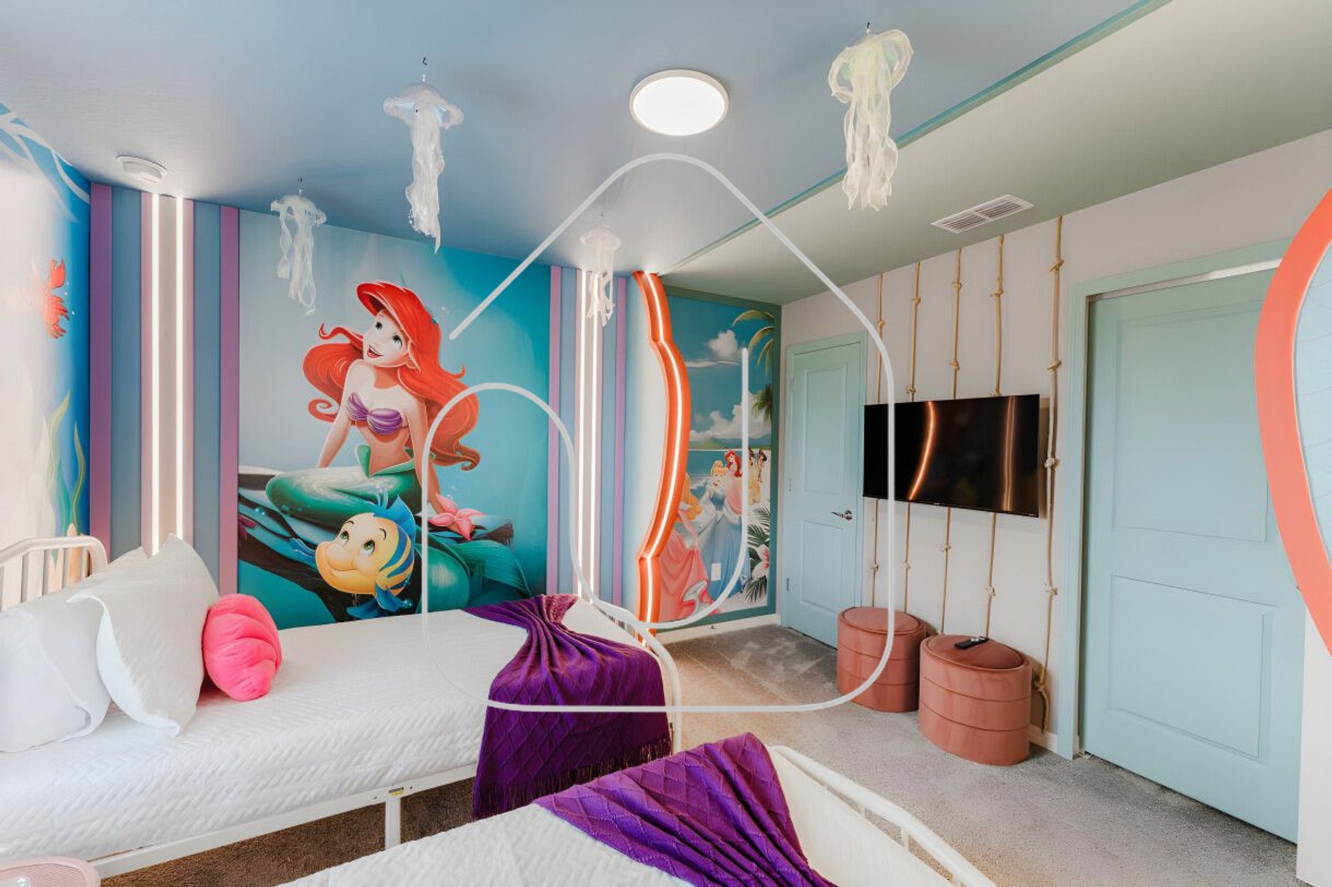 Stay in a brand-new 8BR/6BA luxury villa at Windsor Cay Resort, minutes from Disney. Perfect for families and large groups, this spacious home features a private pool, fully equipped kitchen, stylish living areas, and fun themed bedrooms (Mickey, Star Wars & Princess). Guests also enjoy world-class resort amenities including a lazy river, clubhouse, fitness center, and sports courts. The ultimate Orlando vacation experience.
