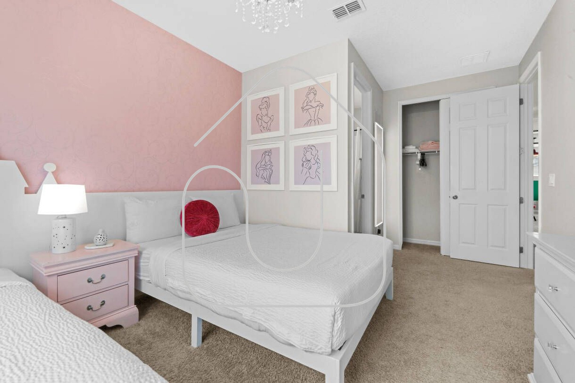 1 quarto com 1 cama queen e 1 cama de solteiro (twin)
