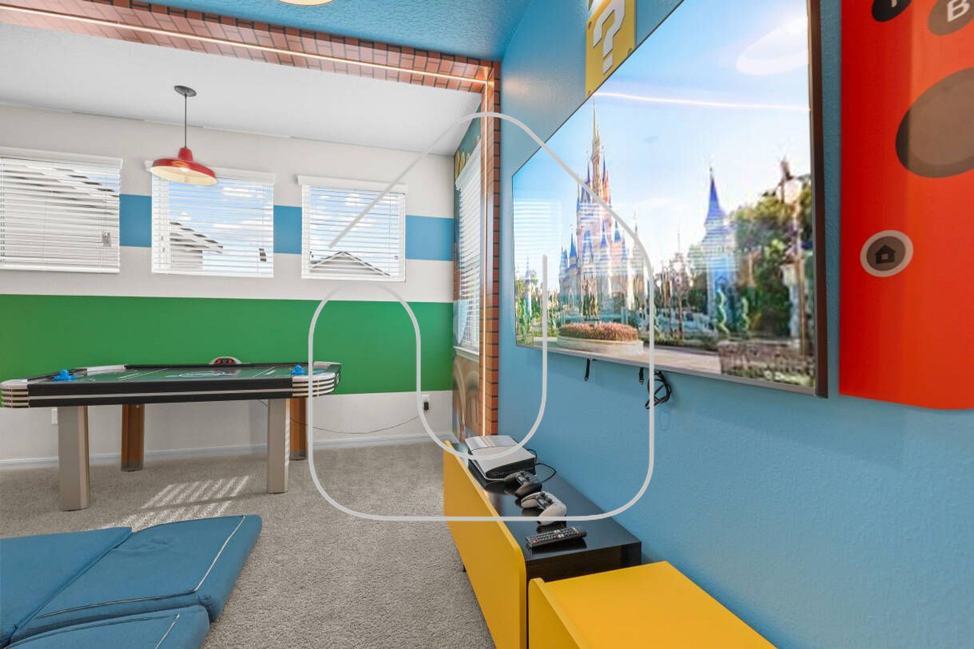 Aproveite o melhor de Orlando nesta casa espaçosa no Solara Resort, a apenas 15 minutos da Disney. Com 7 quartos confortáveis, piscina privativa, sala de jogos no andar superior e cozinha completa, é ideal para famílias e grupos. Sem taxa para acessar as comodidades do resort. Localização privilegiada, próxima aos parques da Disney, Universal, outlets, restaurantes e ao Aeroporto de Orlando. Conforto, lazer e praticidade em um só lugar