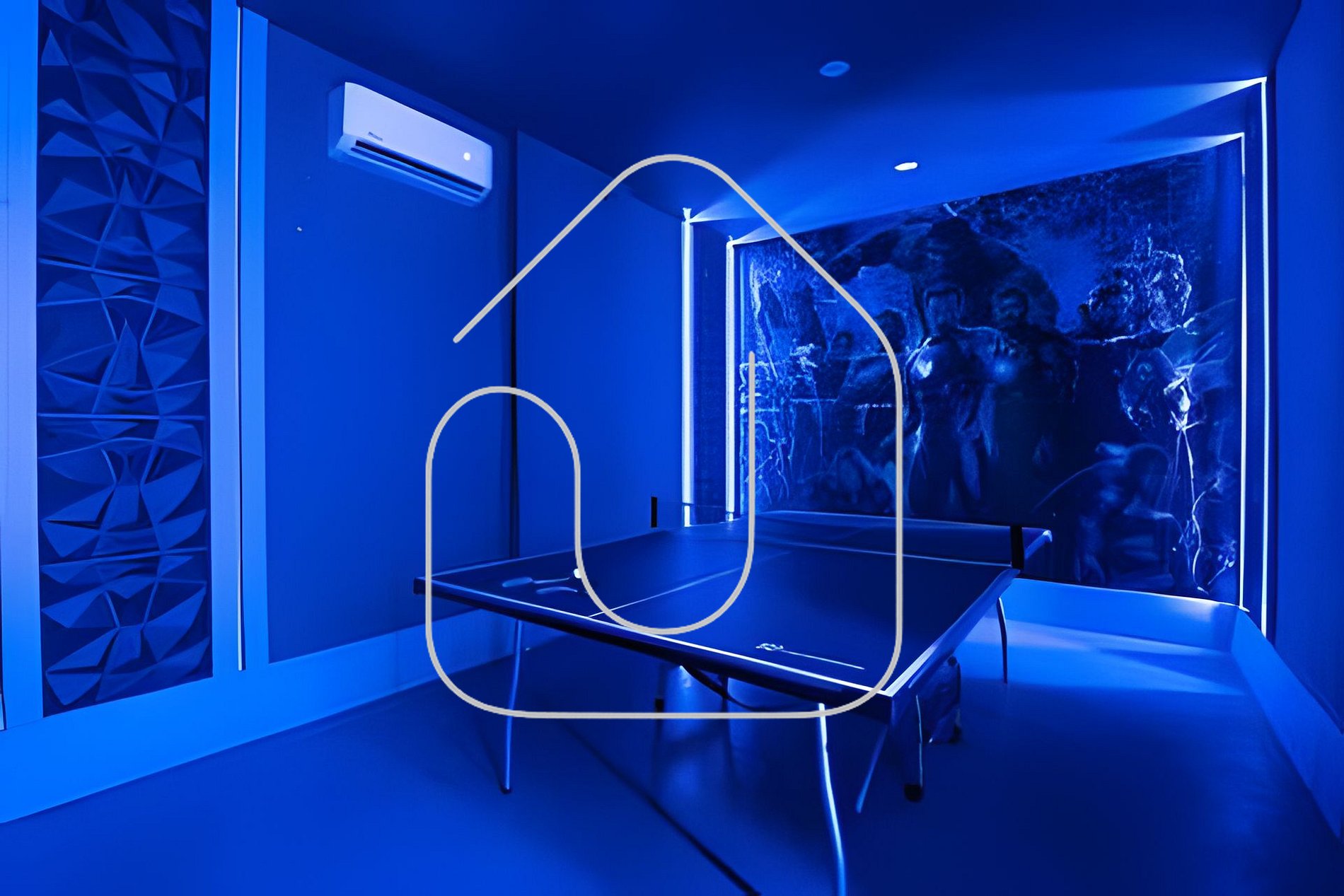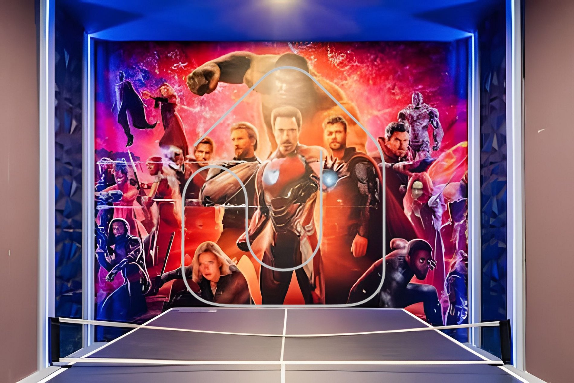 A garagem foi transformada em uma sala de jogos divertida para toda a família.