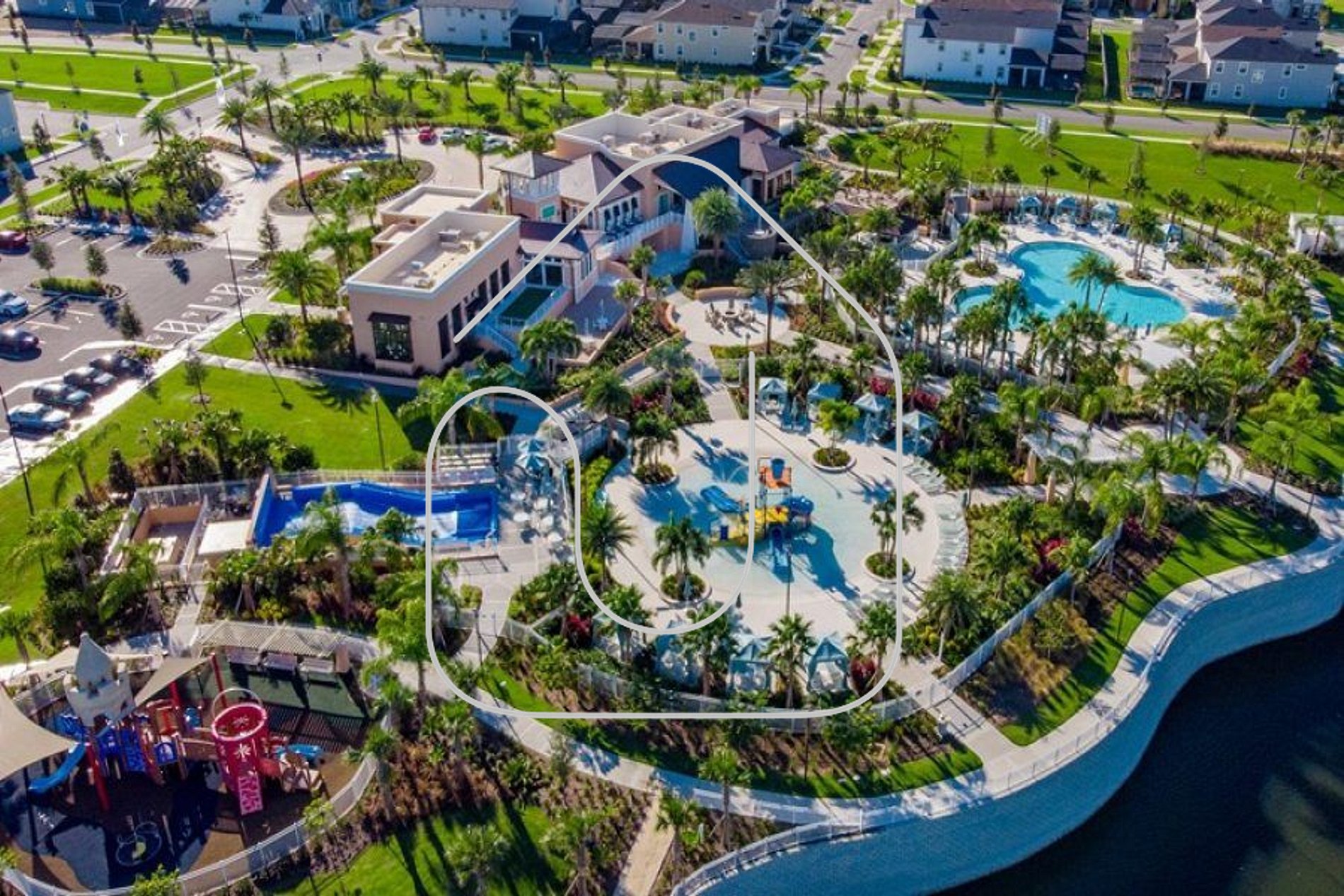 Os hóspedes têm acesso total à casa, à piscina privativa e às áreas do Solara Resort, incluindo clubhouse, FlowRider, splash zone, restaurante e academia.