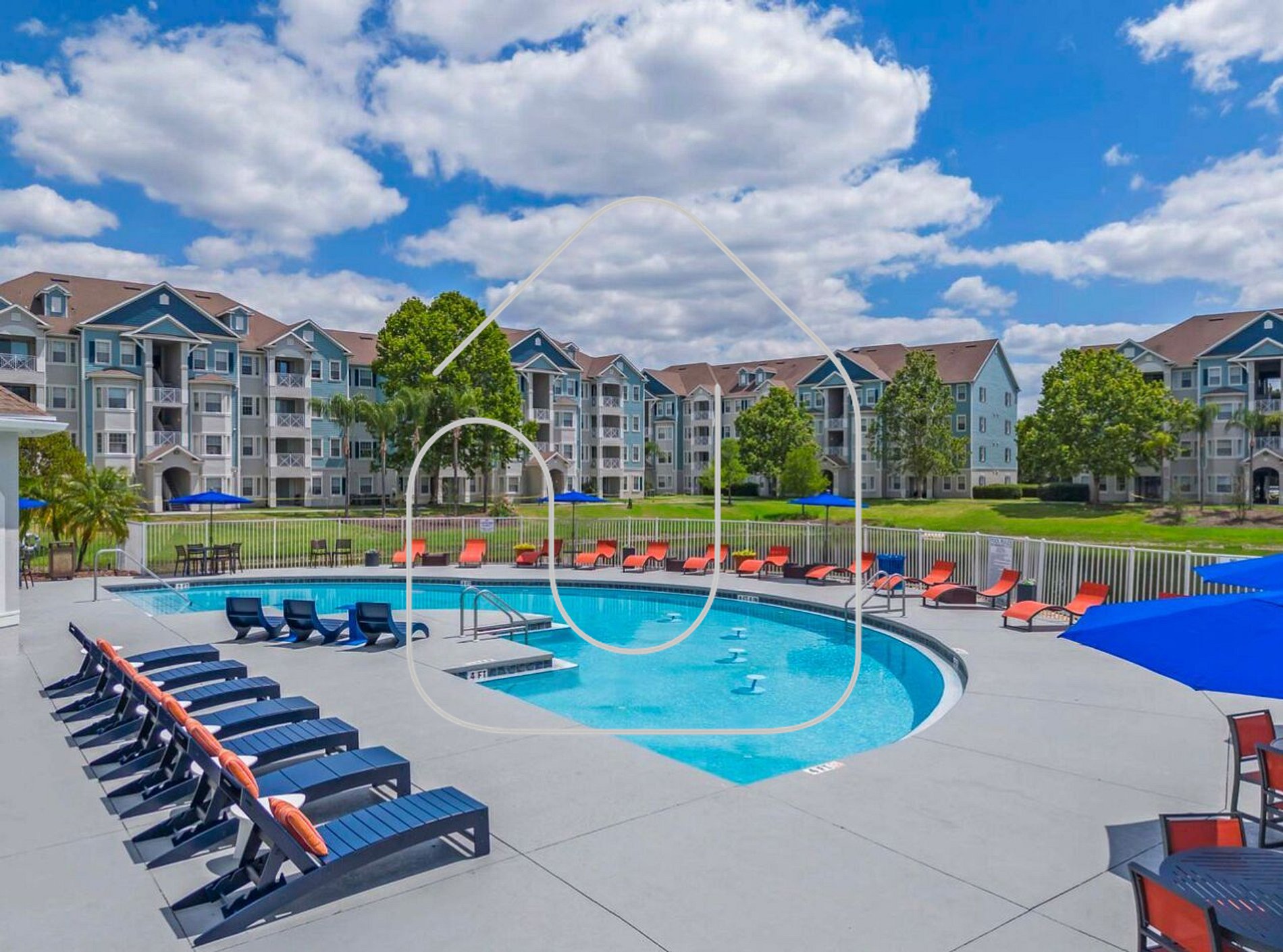 • Piscina, jacuzzi, academia e clubhouse em um ambiente bem cuidado, próximo a lojas, restaurantes e acesso fácil às principais vias de Orlando.