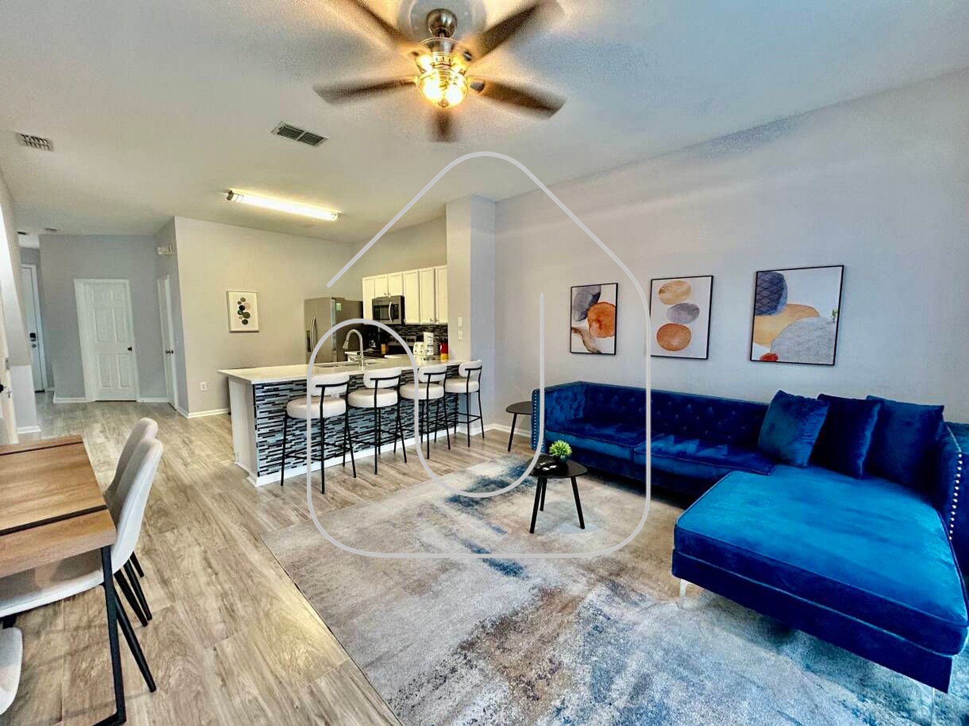 Venha se hospedar em nossa linda casa de 3 quartos e 3 banheiros, completa para acomodar até 8 pessoas. Desfrute de uma estadia única com um quarto temático dos Avengers e sua própria piscina privativa, garantindo momentos de relaxamento e diversão após um dia mágico nos parques da Disney. A cozinha completa oferece tudo o que você precisa para preparar suas refeições favoritas, com opções de refeições ao ar livre no mobiliário encantador.