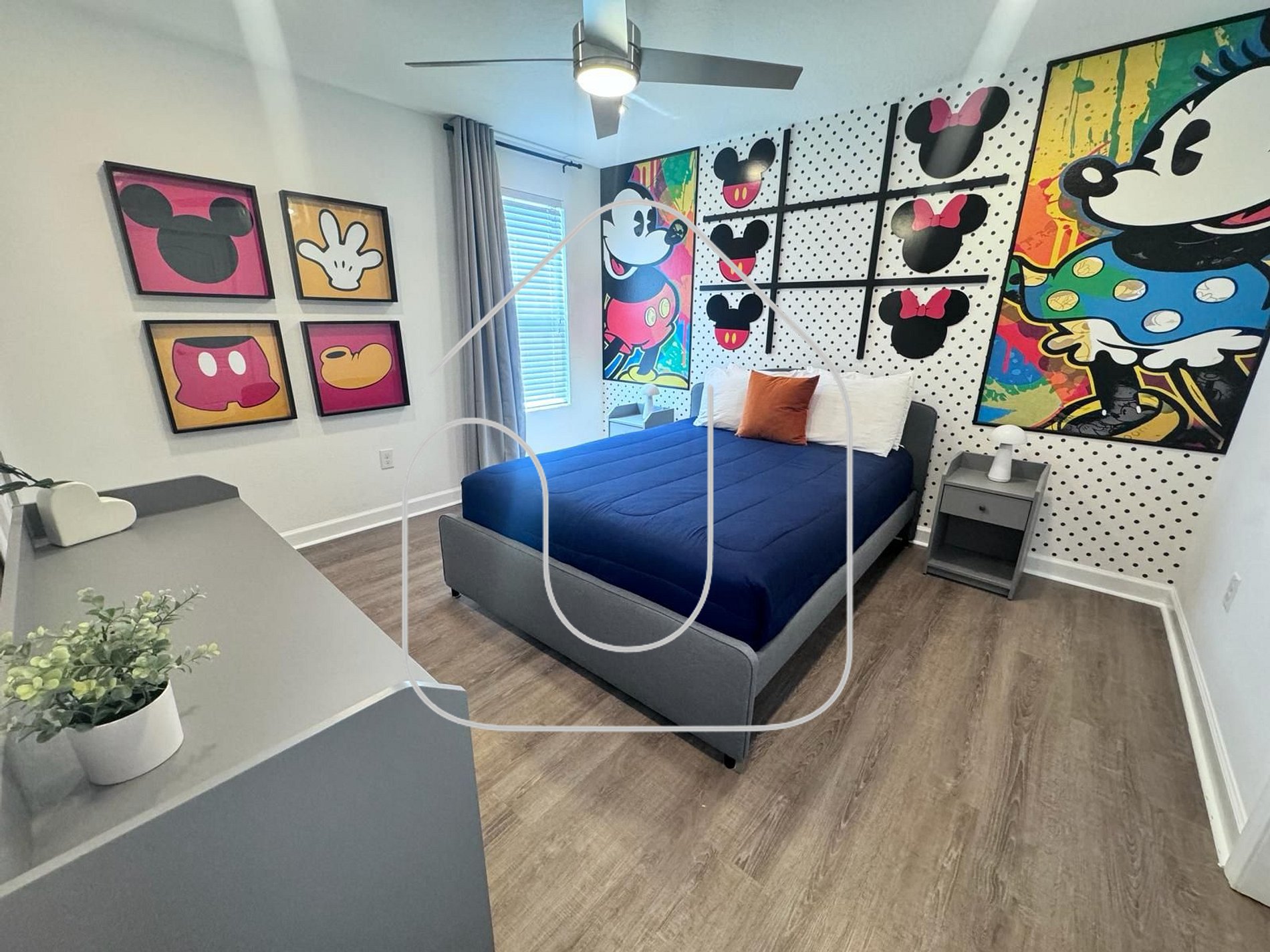 - Quarto 3: Cama Queen, ventilador, tema Mickey, banheiro Jack and Jill compartilhado com o Quarto 4.