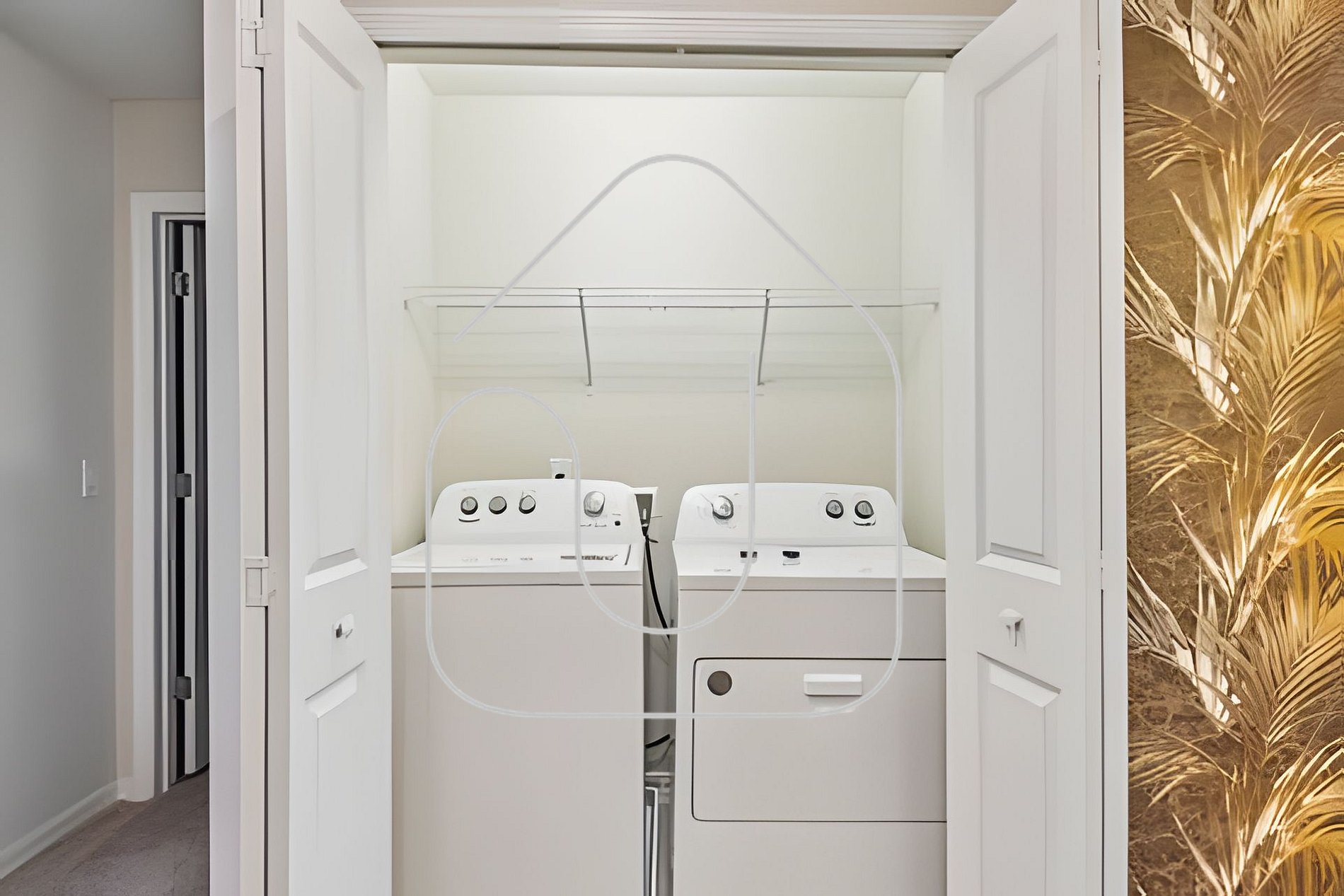 Lavanderia: Máquina de lavar, secadora, ferro e tábua de passar