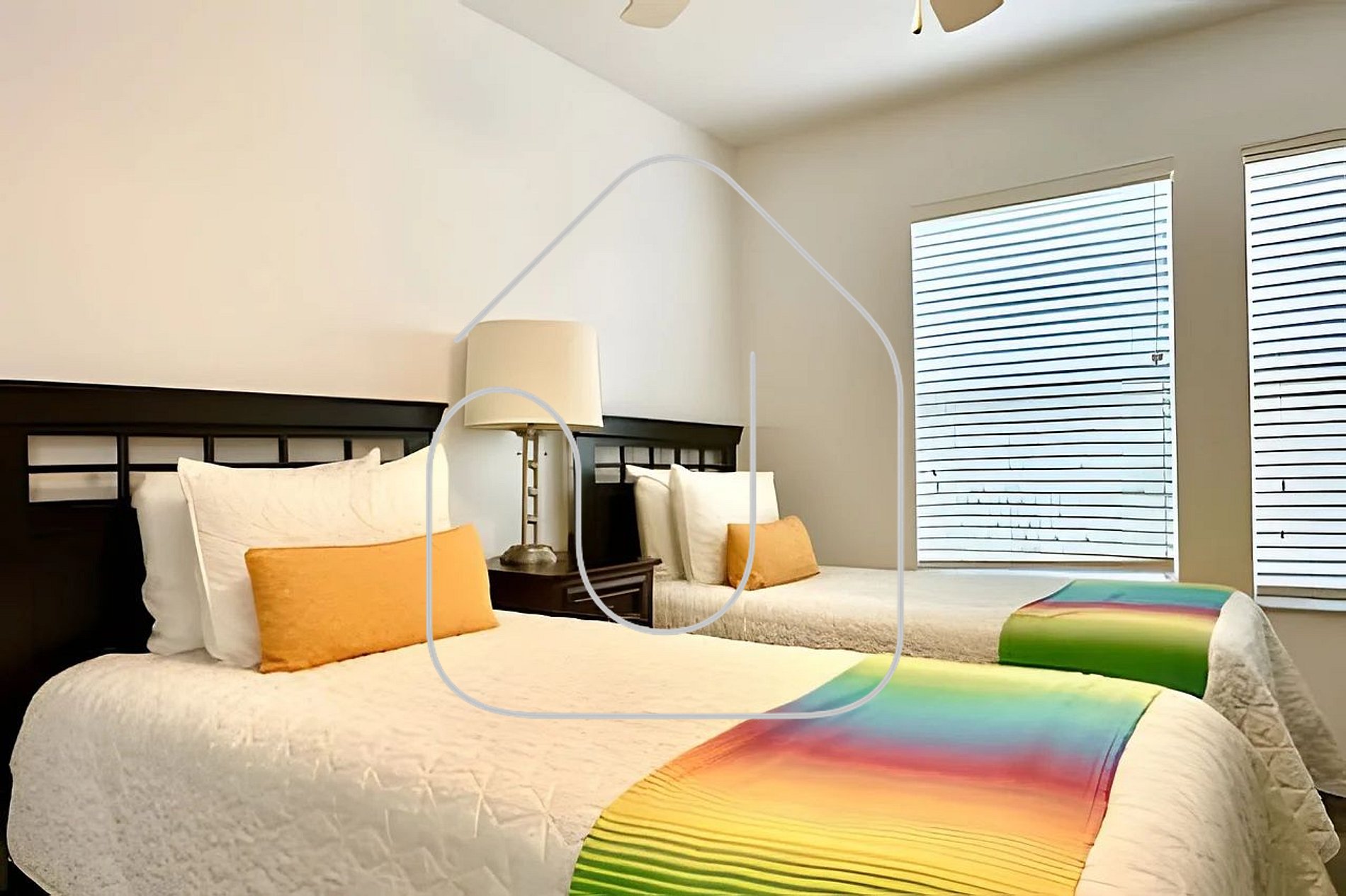 Quarto 2 (Piso Superior): 2 camas de solteiro, TV Roku, ventilador de teto (acomoda 2)