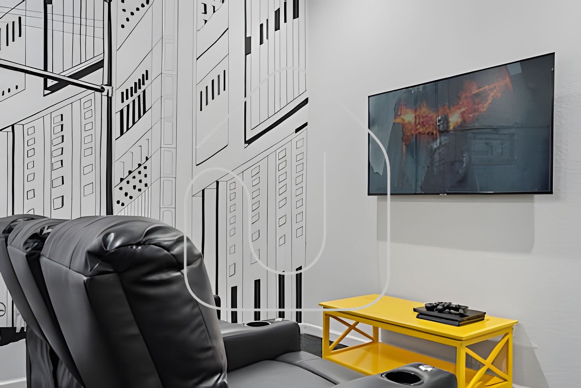 Diversão garantida na sala climatizada com tema dos Vingadores, equipada com Avengers Pinball, máquina de dança, basquete eletrônico, sofás reclináveis e Smart TV.